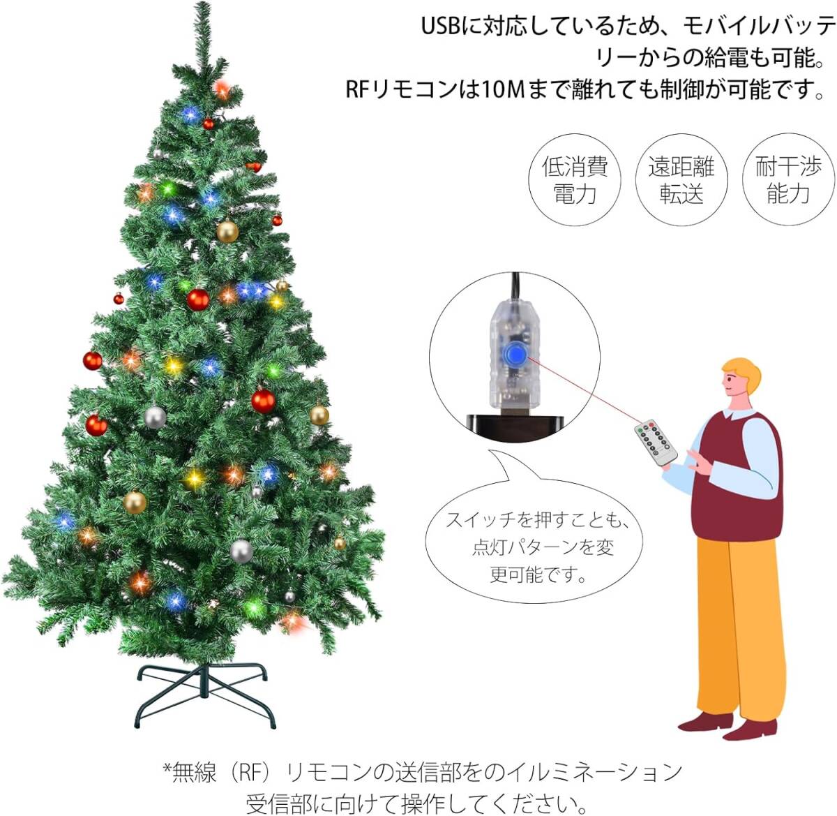 クリスマスツリーが一瞬で華やかに変身し、部屋全体が暖かくロマンチックな雰囲気に包まれます。