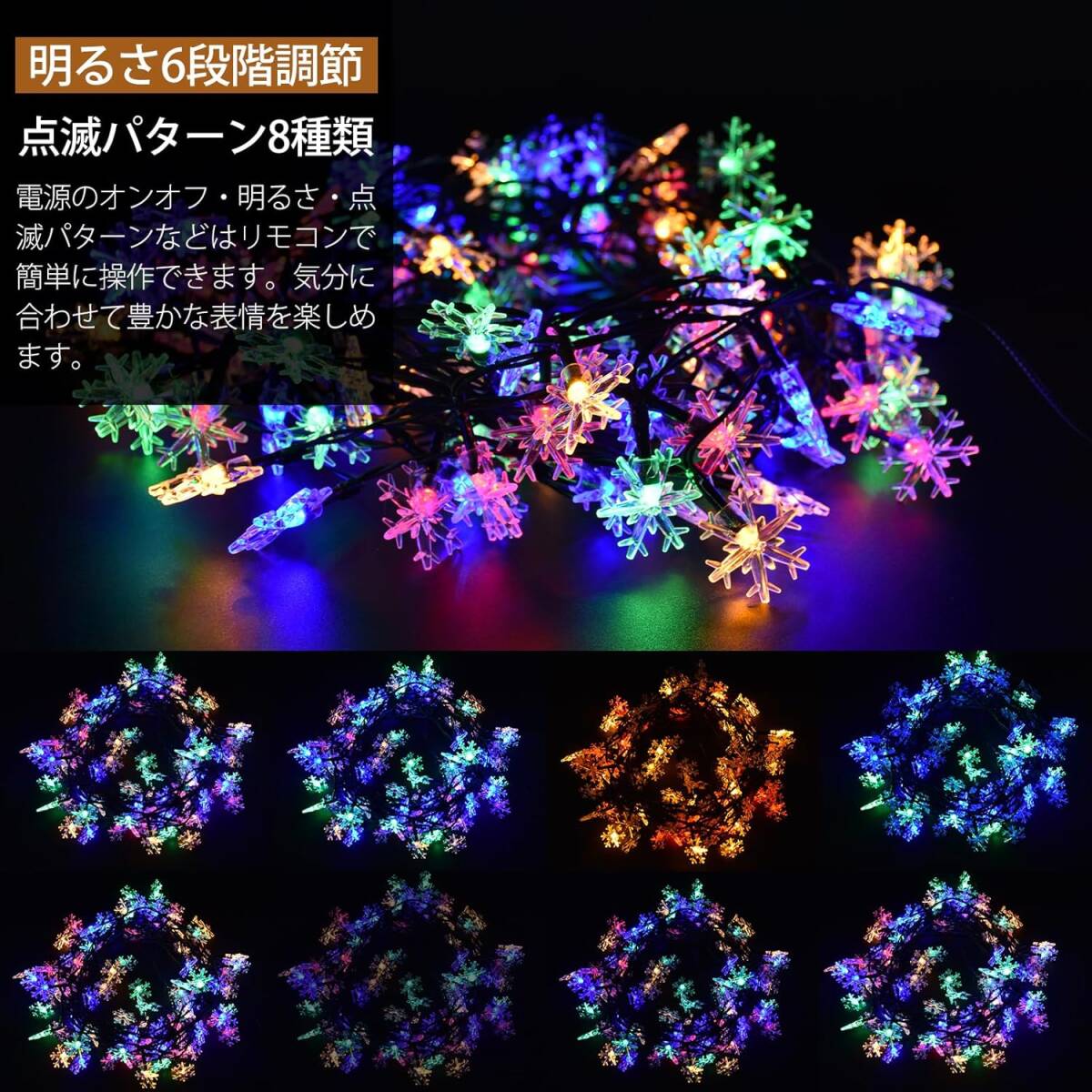 イルミネーションライト 雪の結晶 USB 12M 100電球 雪 led 多彩 8パターン IPX4 防水 リモコン制御 室内 屋外 led ライト