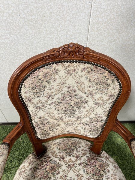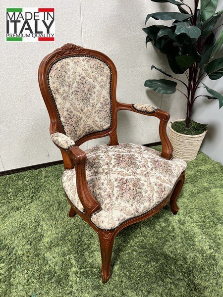 §輸入家具【 イタリア製 / 鋲打ち アームチェア ダイニングチェア 猫脚 クラシック アンティーク家具 ヨーロピアン サロンチェア 】P06063