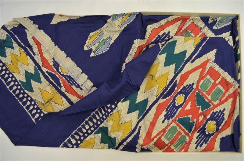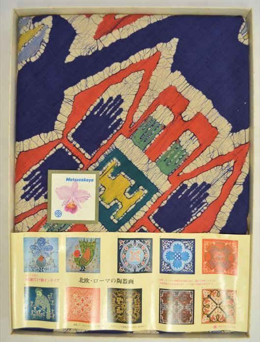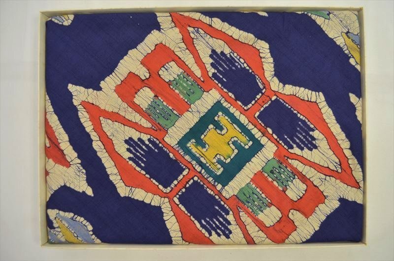 ローケツ染めのようなお品の未使用ですが、永年の保存により多少クスミはあるかと思われますがきれいなお品です。