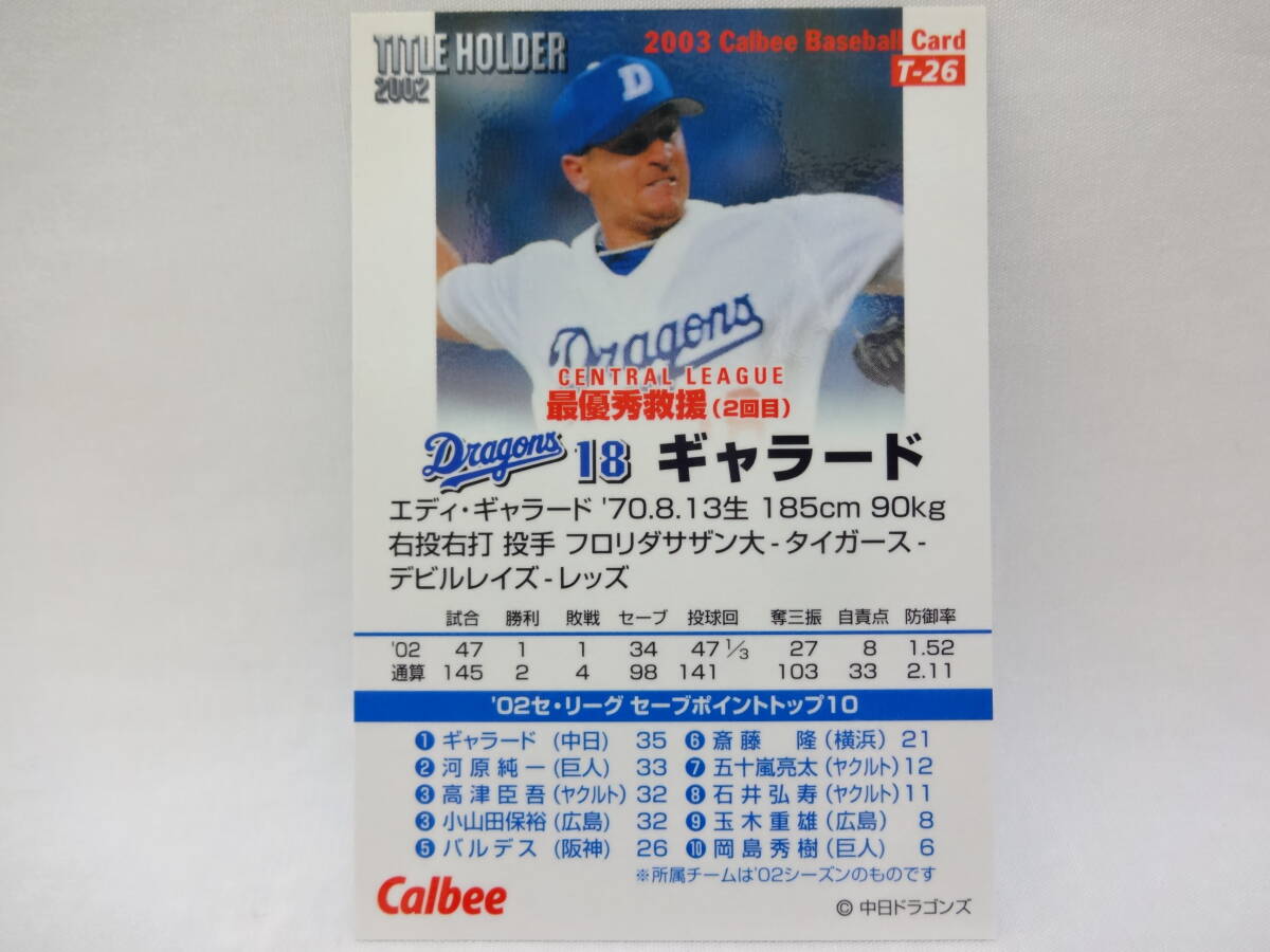 2003 カルビー TITLE HOLDER 2002 シルバーサインパラレル T-26 中日ドラゴンズ 18 ギャラード