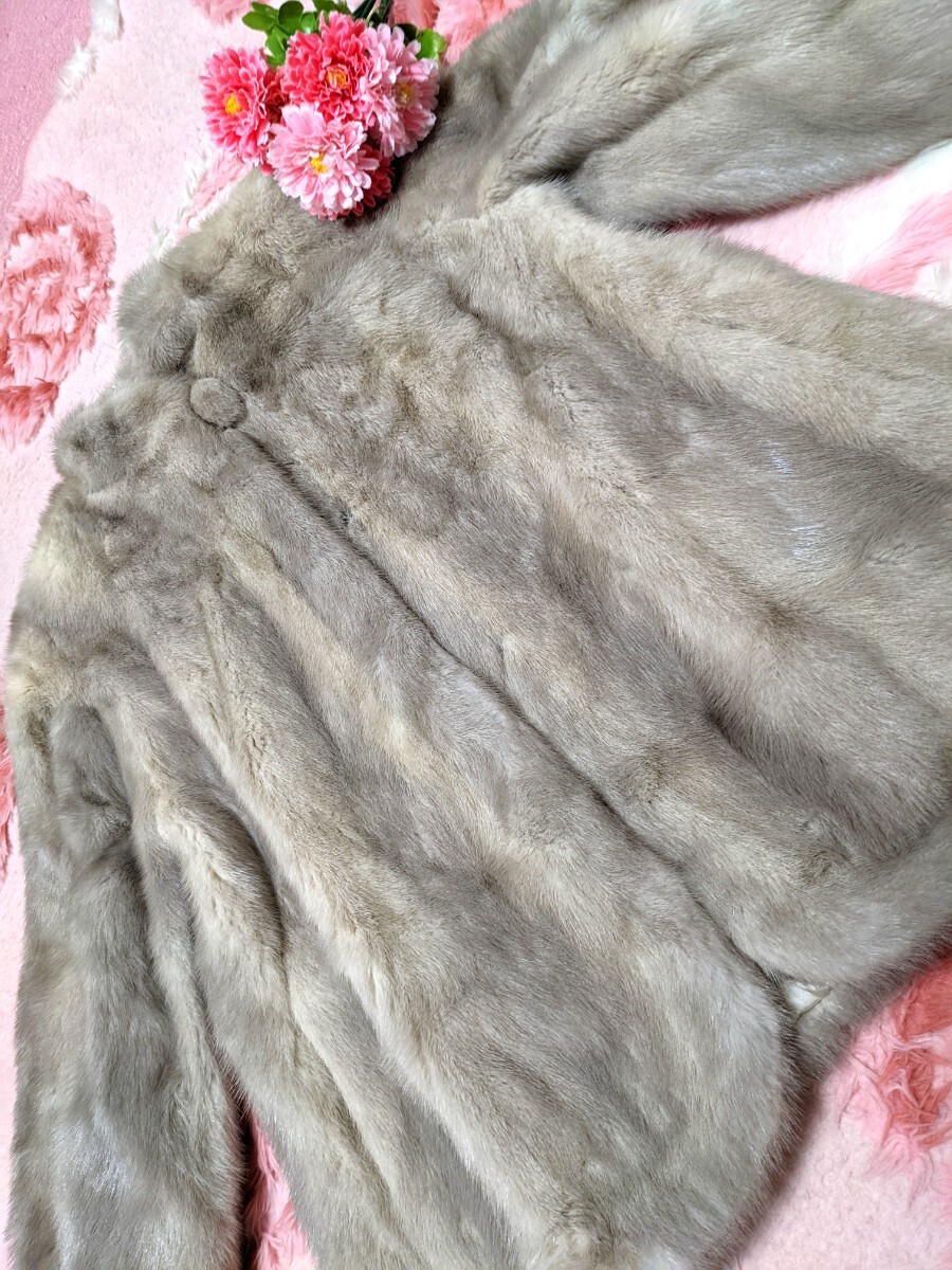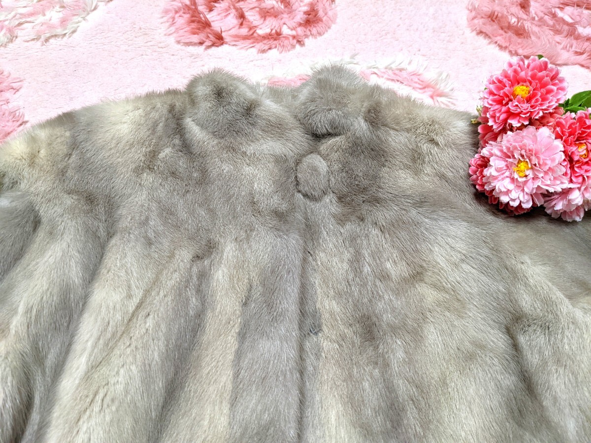 着丈65センチ・身幅48センチ★首丸い毛皮ボタンと下2箇所フックが付いてます!