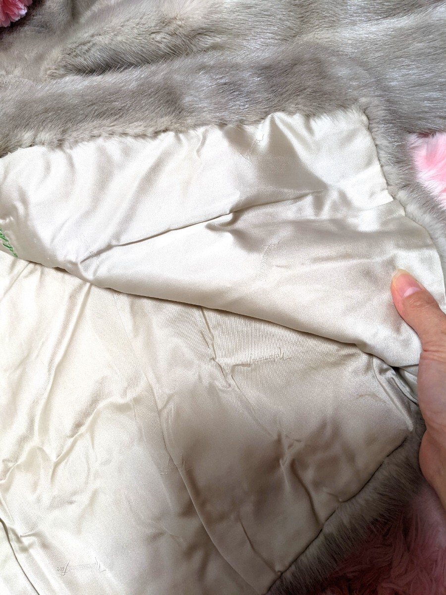 毛はかたくなくツルっとしていて裏地も刺繍文字いりでしっかりしてます!
