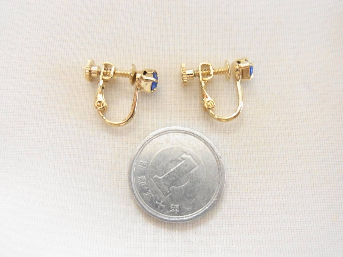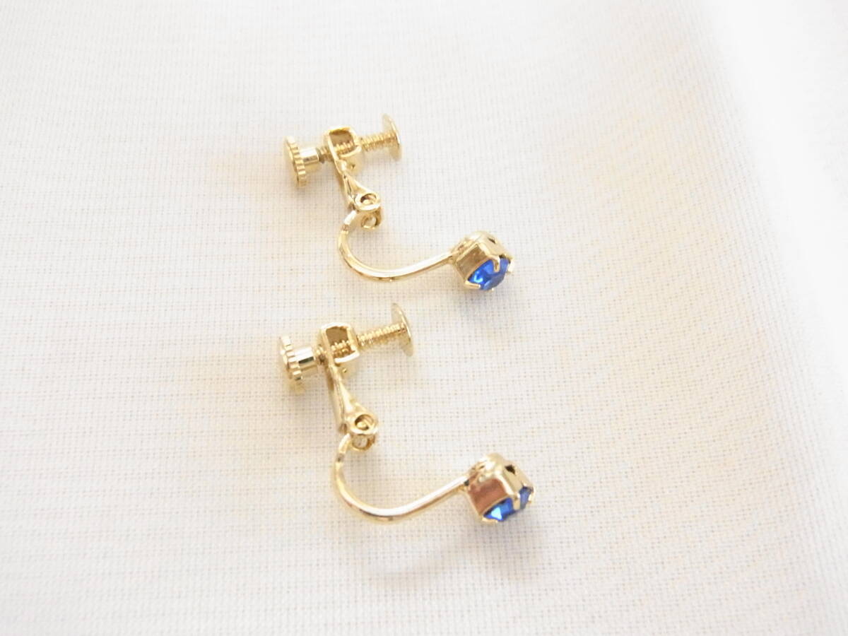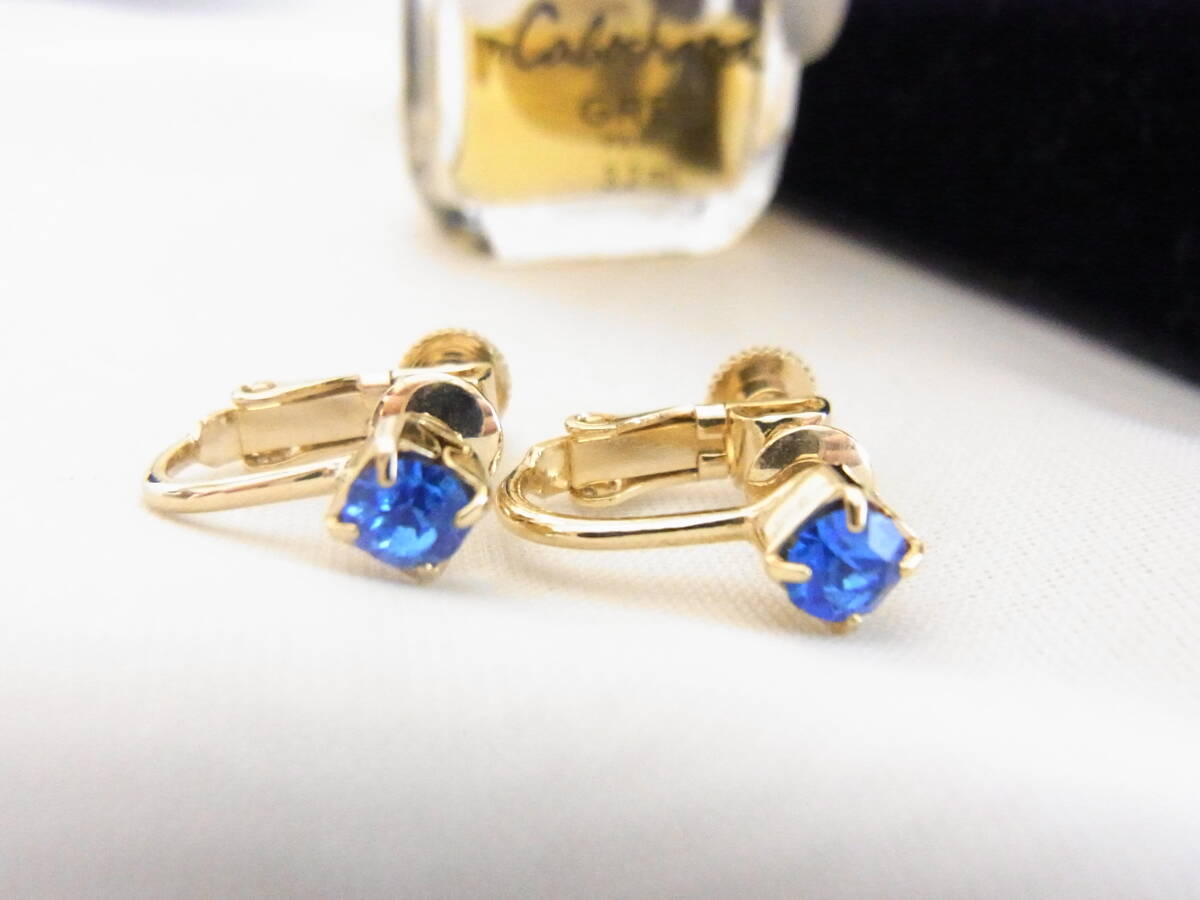 ★ビンテージ/ヴィンテージ 小粒の素敵なサファイアブルートーンのジルコン 輝くビジュー 輝石 金色との2トーンが豪華感イヤリング