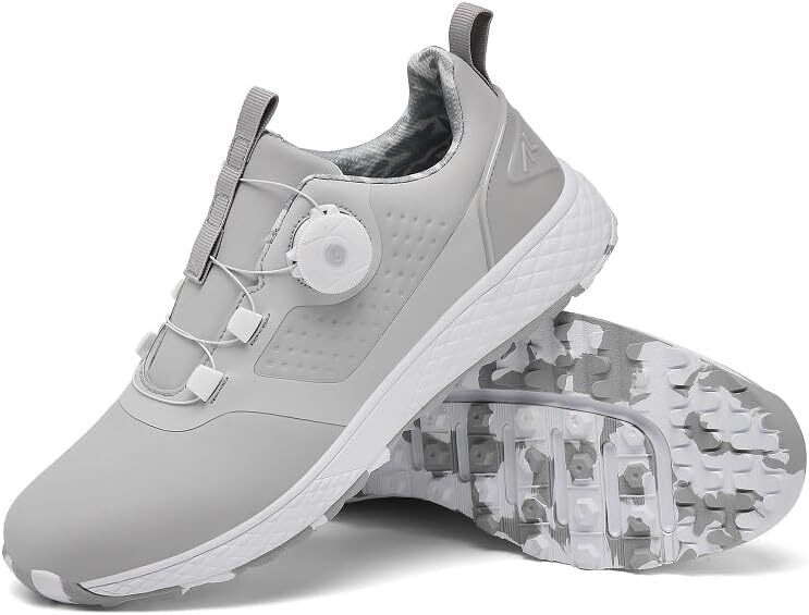 ゴルフシューズ スタッドレス防水ゴルフスニーカー軽量ソフト底滑り止めウォーキングシューズ グレー サイズ:25cm