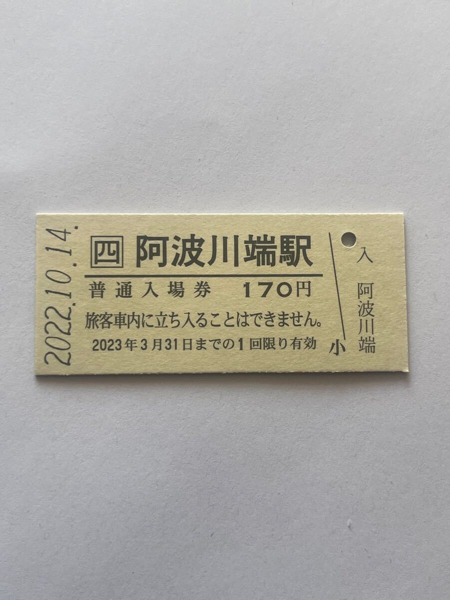 JR四国高徳線阿波川端駅のB型硬券入場券です。(2022年)