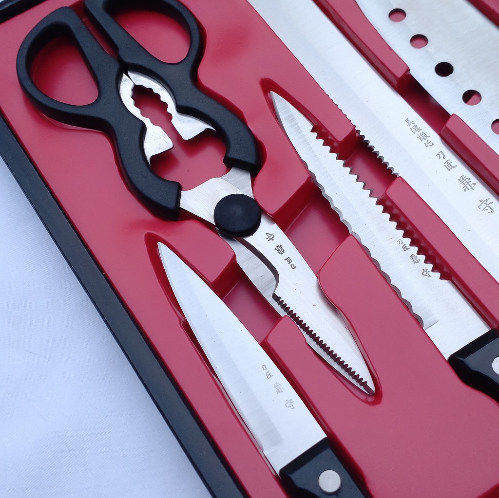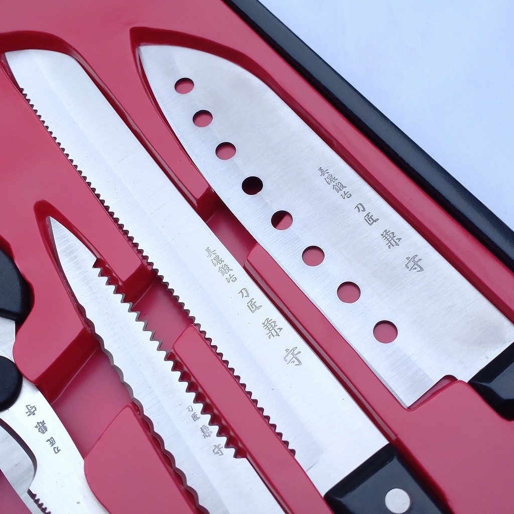 調理刃物5点組 高級ステンレス製 刀匠 兼守 包丁セット 万能包丁 冷凍包丁 魚包丁 キッチンハサミ ぺティナイフ 未使用保管品
