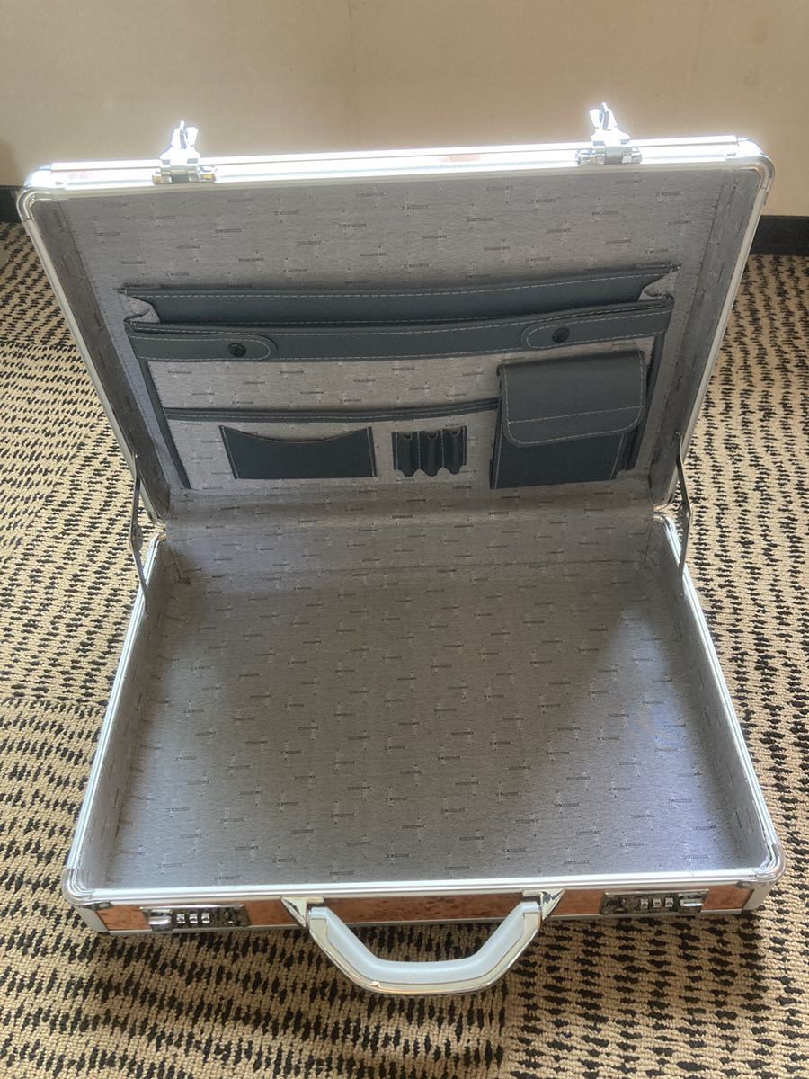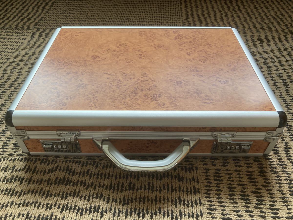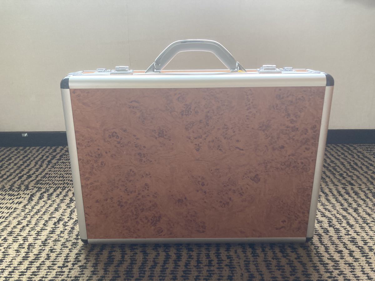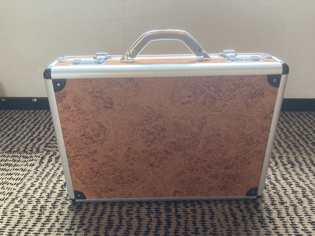 未使用 アルミアタッシュケース 木目調 ウッドパターン 鍵付き ダイヤルロック錠タイプ 送料込