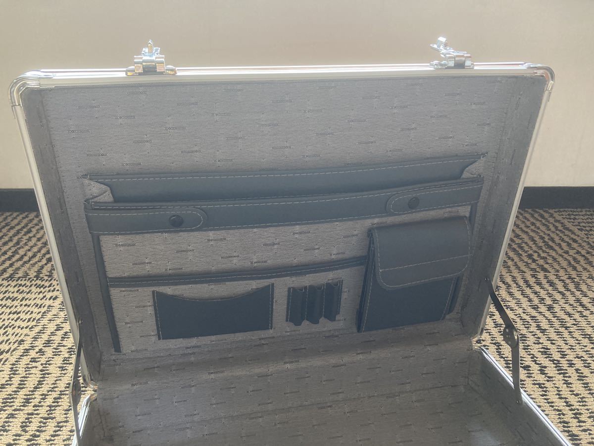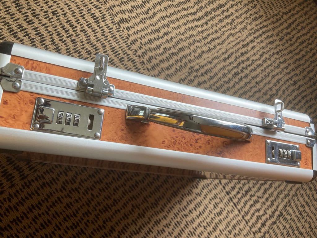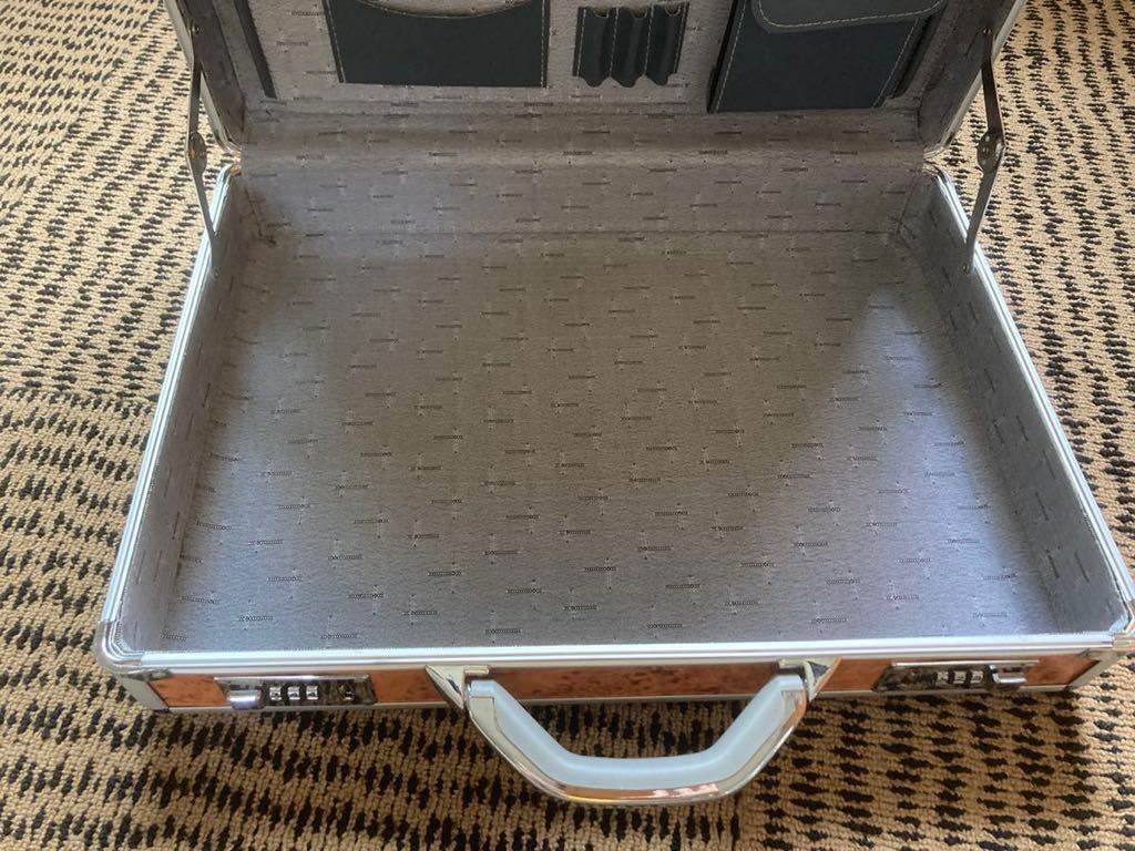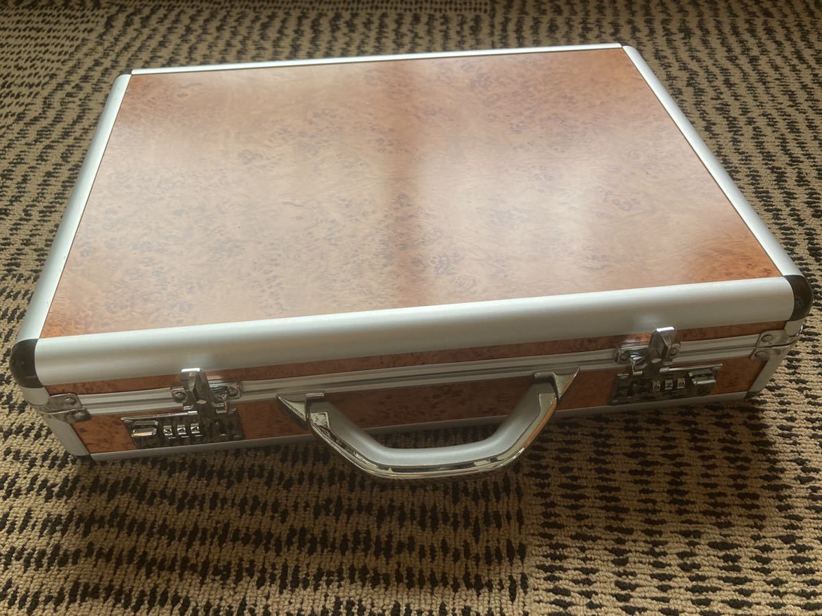 未使用 アルミアタッシュケース 木目調 ウッドパターン 鍵付き ダイヤルロック錠タイプ 送料込