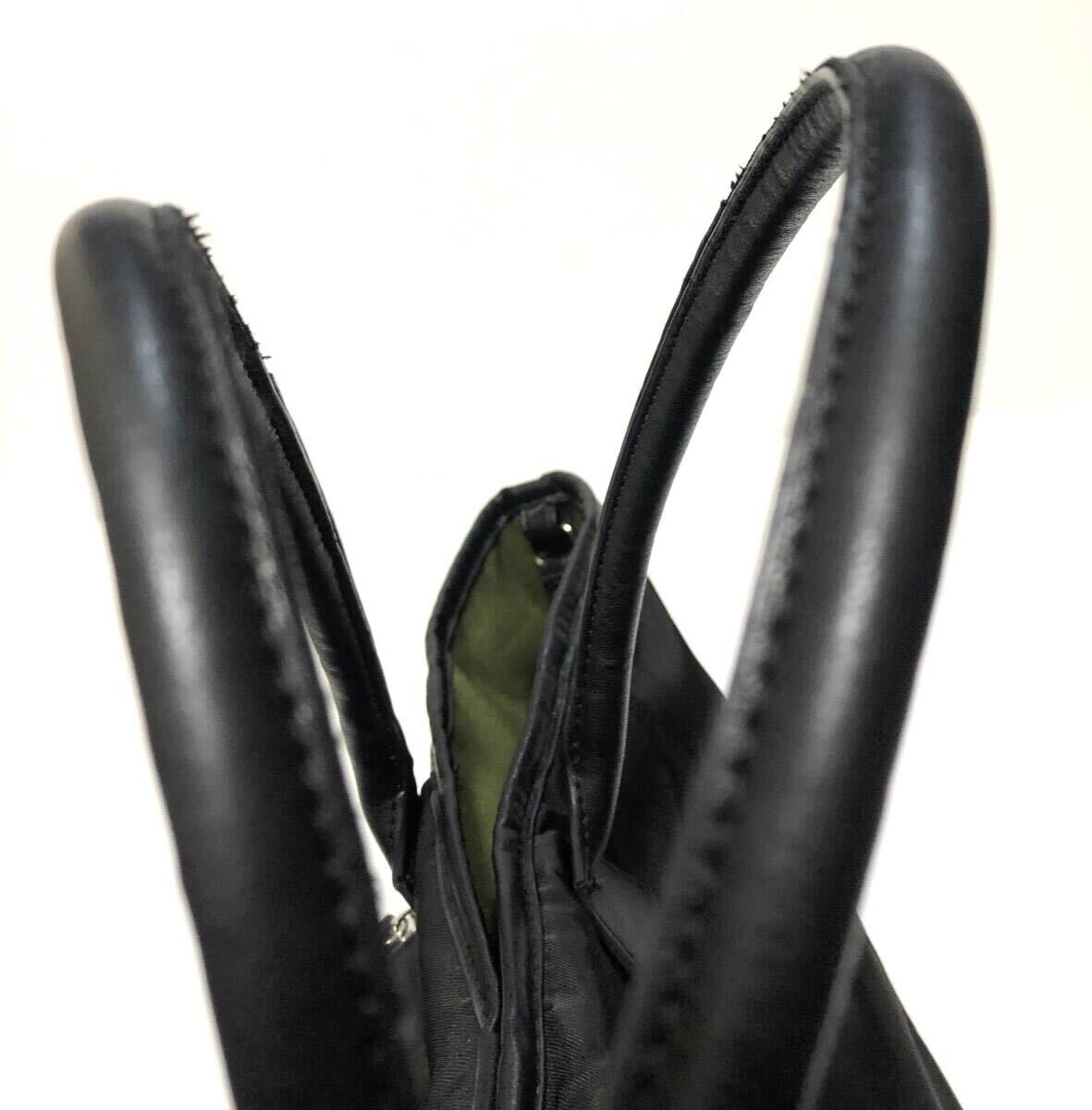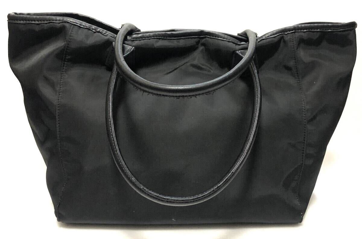 ロゴがプリントされており、持ち手、入れ口はレザー(フェイクレザー)です。