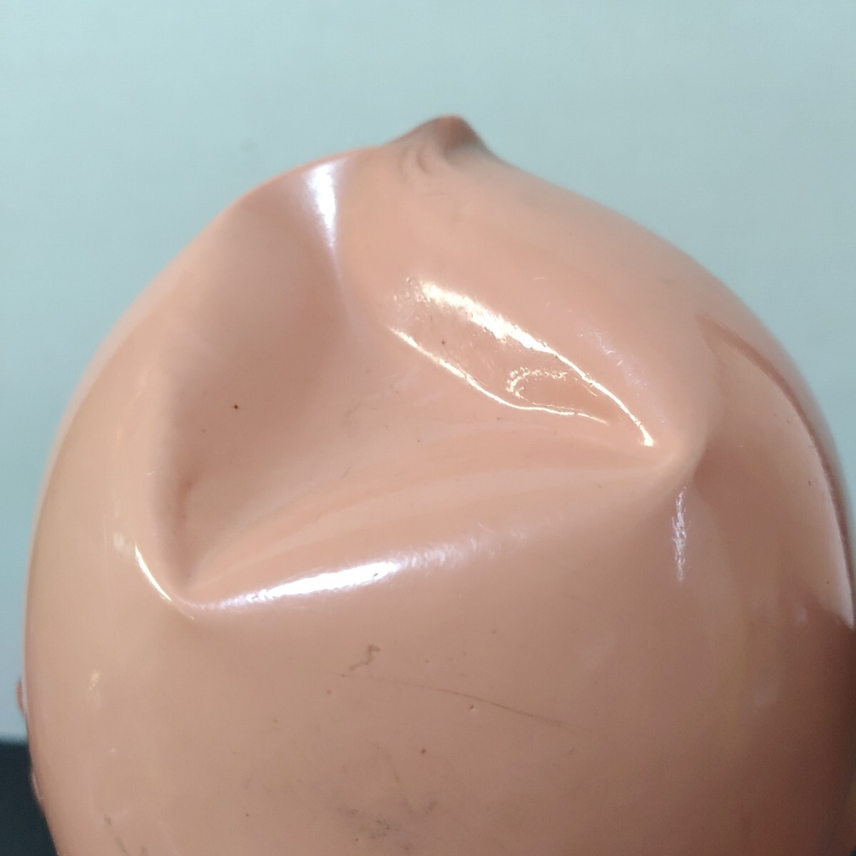 後頭部がへこんでいます。メーカーの文字がハッキリ読めません、写真をよくご覧ください。