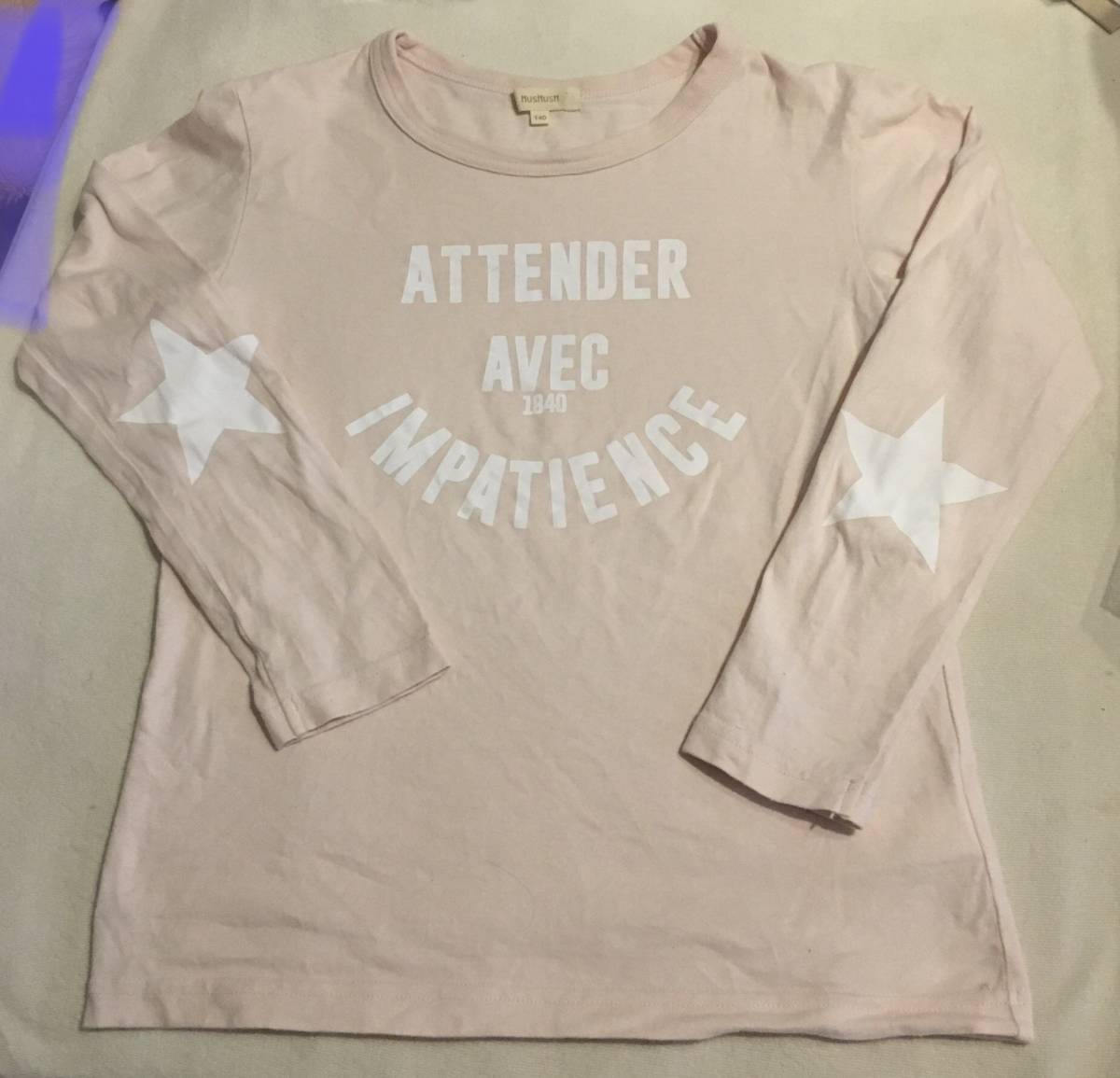 中古ラストHusHusHスターエルボーロゴカットソーベビーピンク(071) 14(140cm)定価1089円