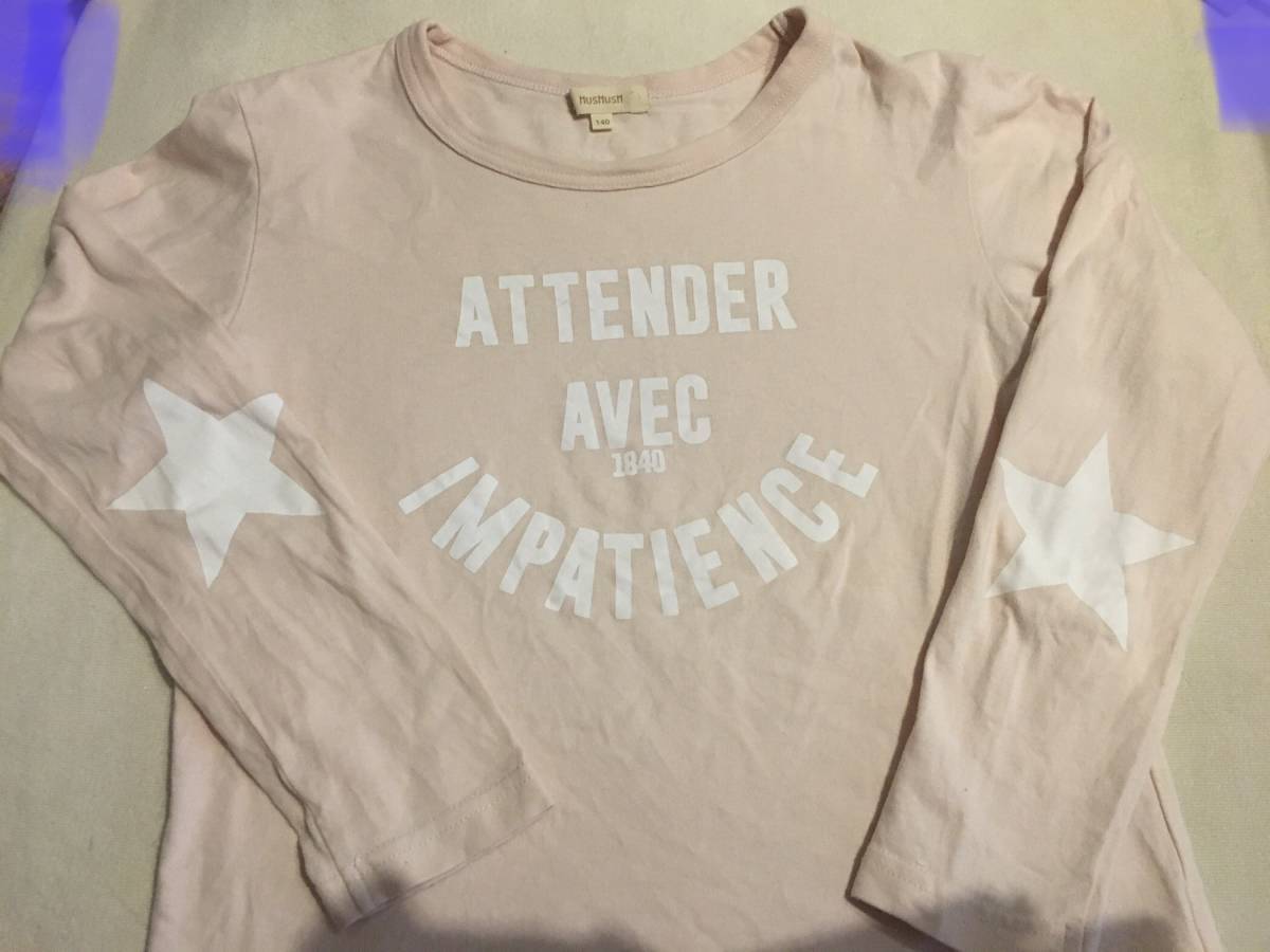 中古 HusHusH スターエルボーロゴカットソー ベビーピンク(071) 14(140cm) 定価1089円