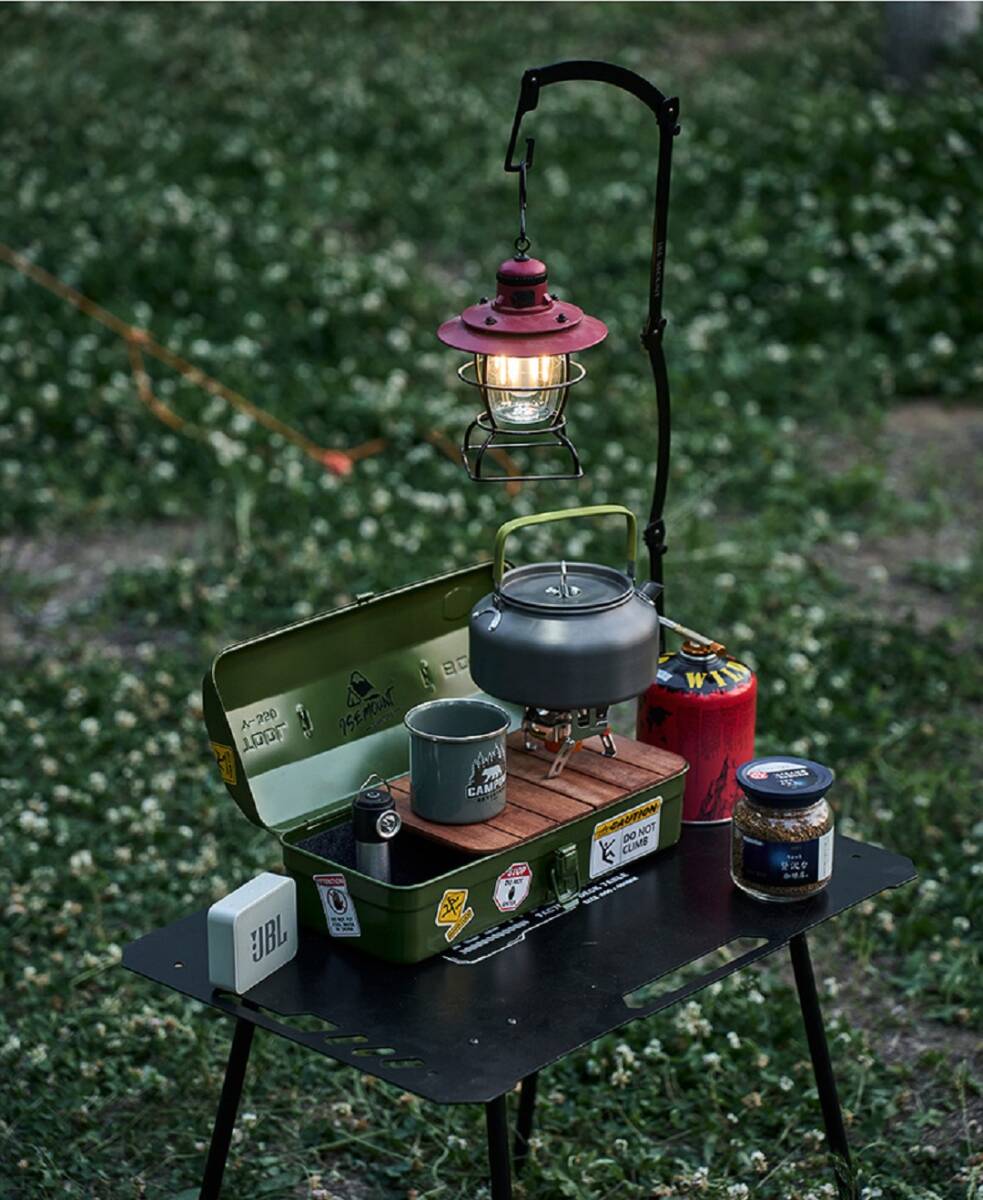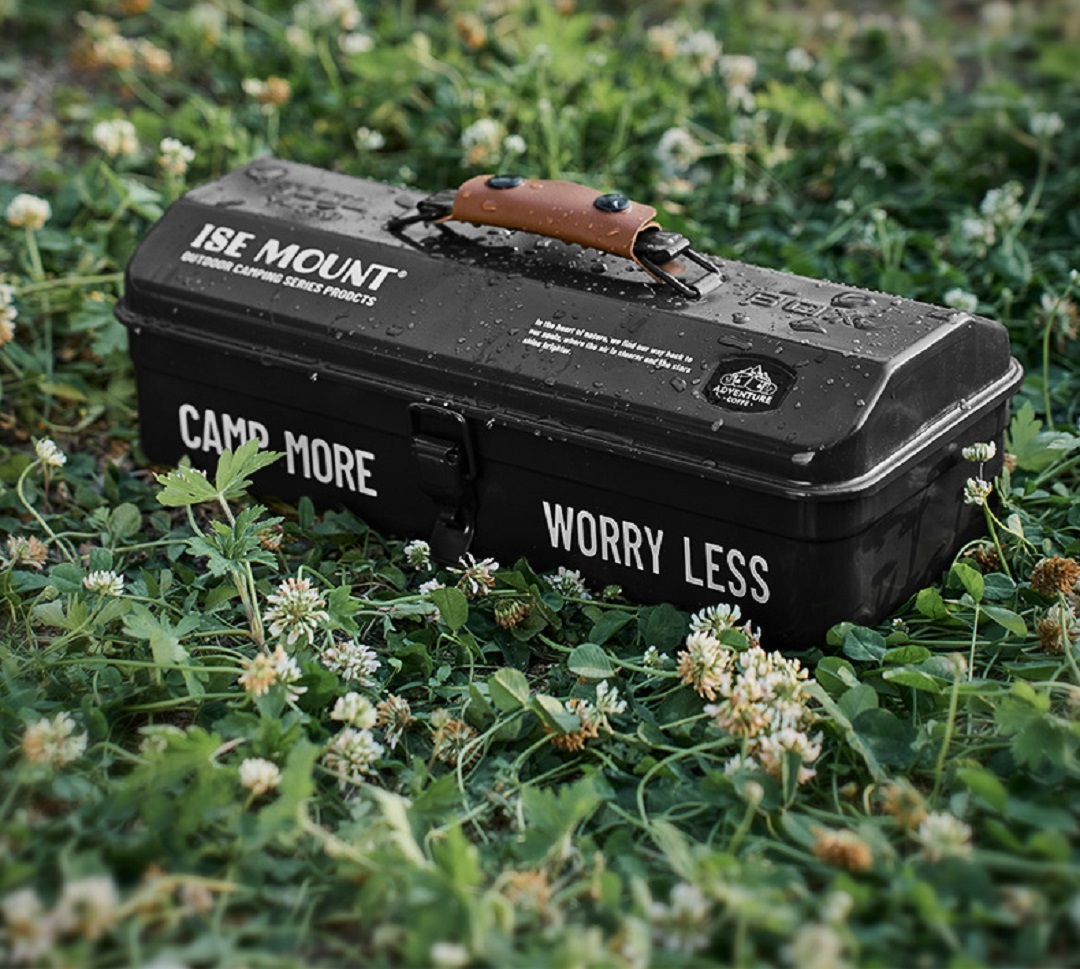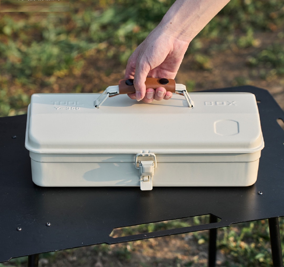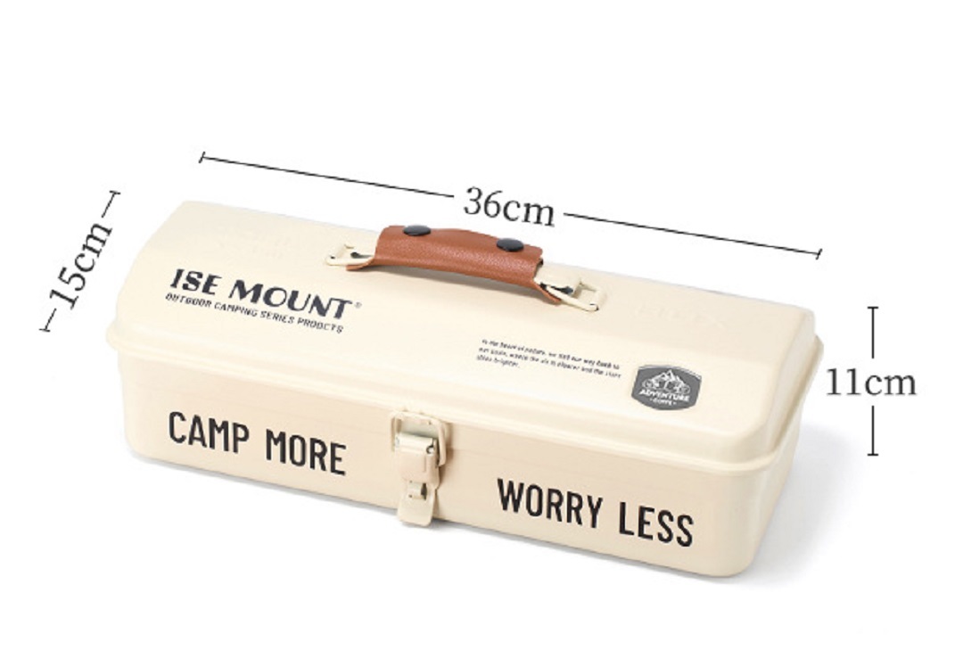 限定色アウトドアコーヒーボックス道具箱クッカーケース 小物収納ツールボックス収納ボックス鉄製36×15×12cm キャンプ 野外登山 ベージュ