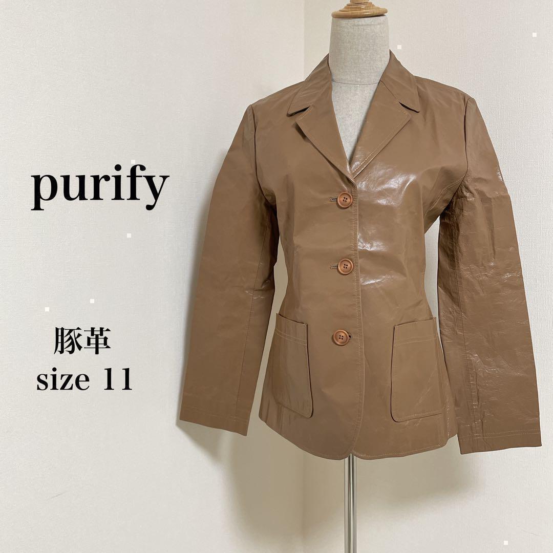★ purify ピュアリィ アウター レザージャケット 豚革 韓国製 ブラウン 11 古着【j6-1098】