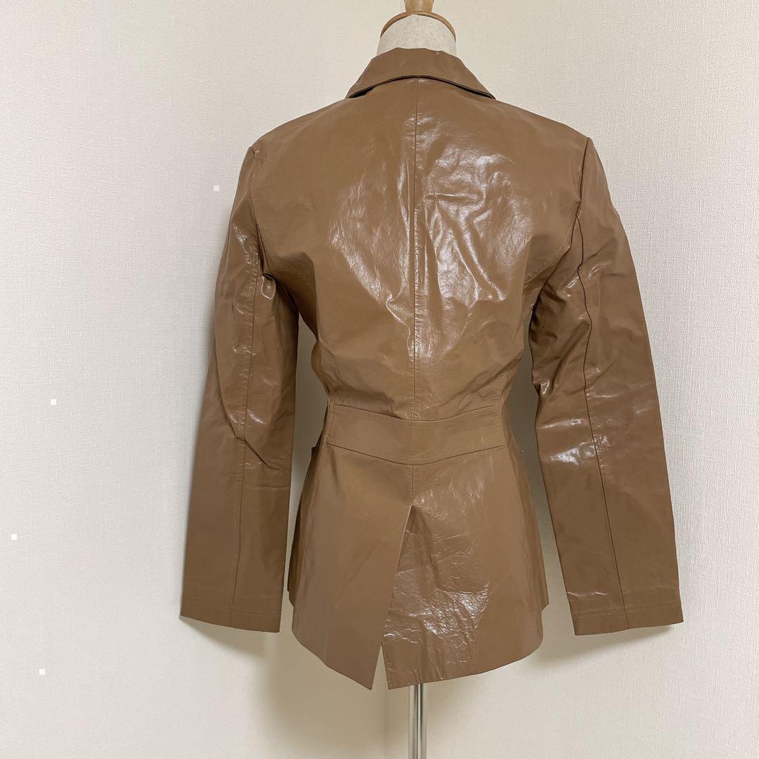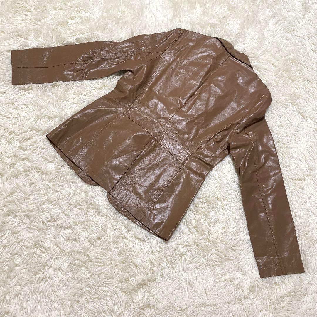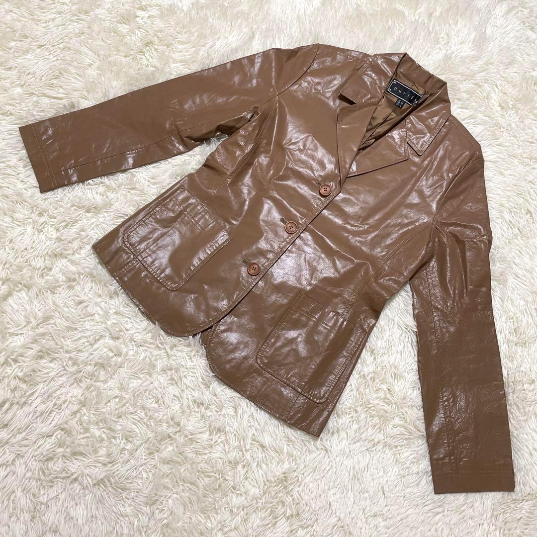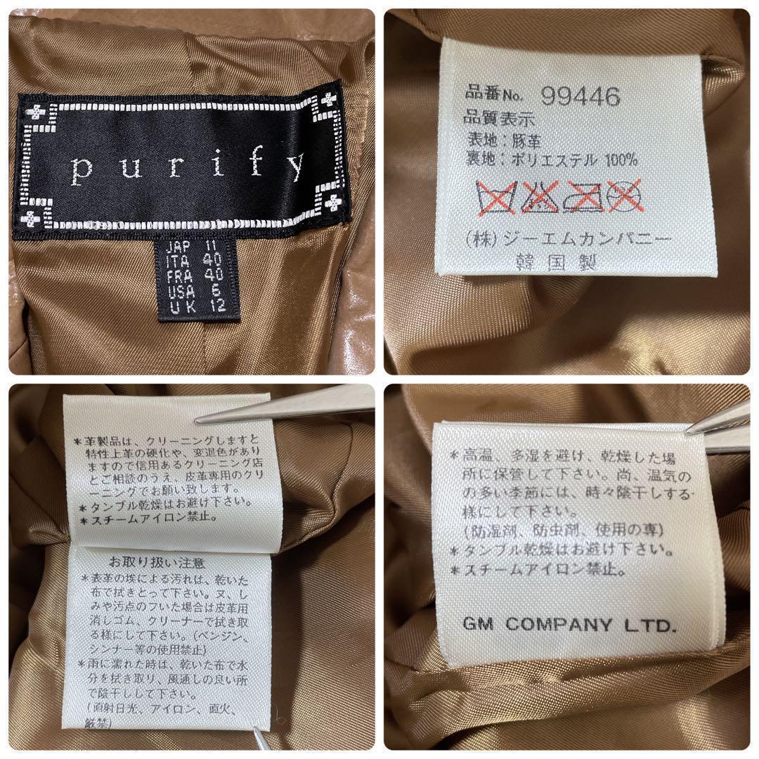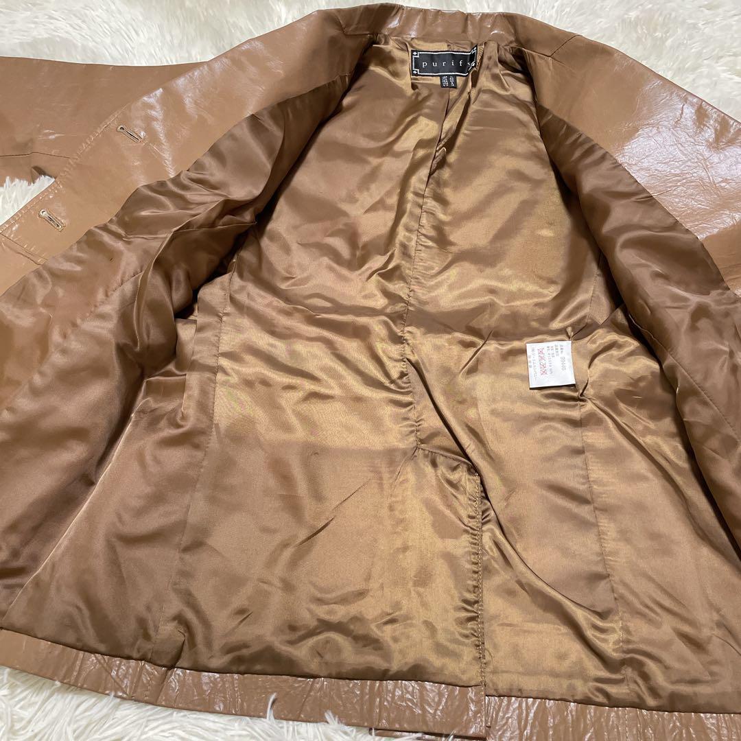 ピュアリィファイ アウター レザージャケット 豚革 光沢 韓国製 ブラウン 11