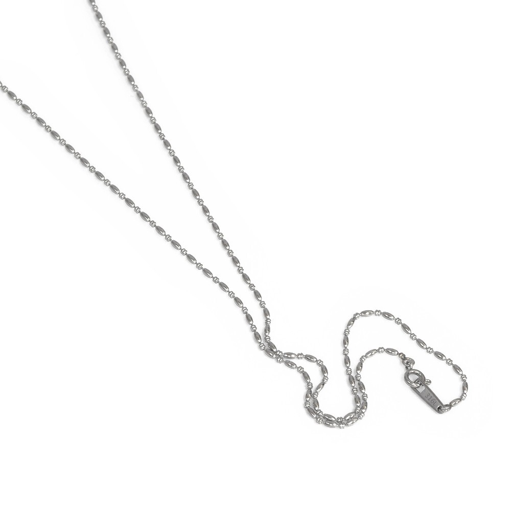そろばんライスチェーンは、ソロバン型のコマとライス型のコマが交互に連なったボールチェーンにも似たチェーン。少しエスニックな雰囲気が漂うネックレスです。 ※こちらのチェーンは絡まりにくく万が一絡まってしまったとしても解きやすいデザインです。 |
