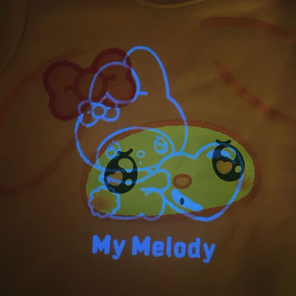 新品63421 マイメロディ 120cm 裏起毛光る長袖パジャマ 長袖長ズボン上下セット ピンク キッズガールズルームウェア蓄光パジャマサンリオ