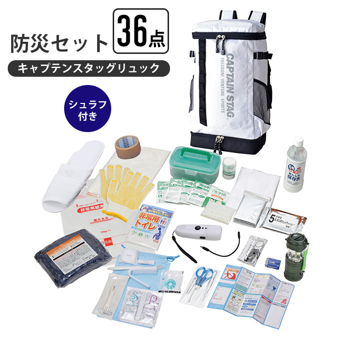 | ※【同シリーズ】のリンクは当店のヤフオク店のページへ進みます。 ● キャプテンスタッグリュック防災セット14点 ● キャプテンスタッグリュック防災セット19点 ● キャプテンスタッグリュック防災セット25点 ● キャプテンスタッグリュック防災セット26点 ● キャプテンスタッグリュック防災セット36点 ※このページは[キャプテンスタッグリュック防災セット36点]を販売しております。 |