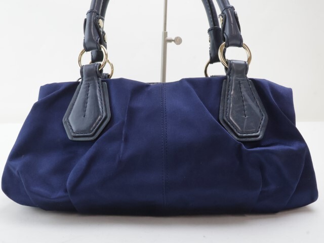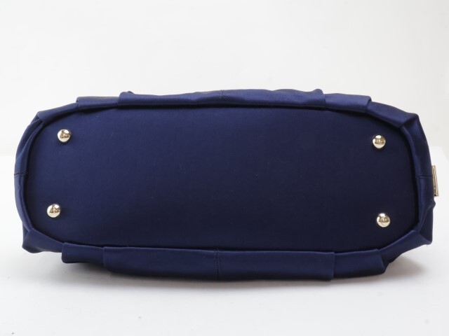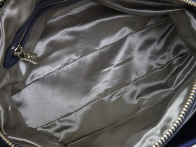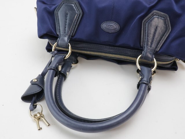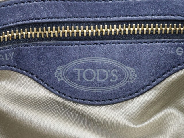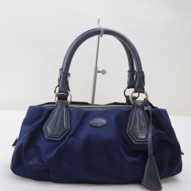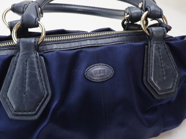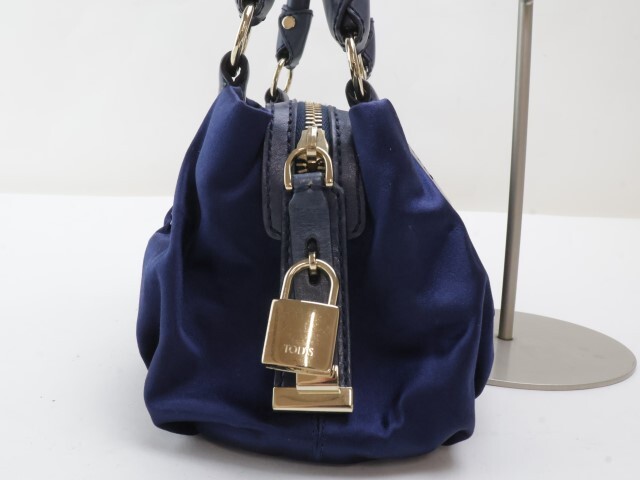 2411-36 トッズ ハンドバッグ TOD’S シルク×レザー製 ネイビー 上ZIP 金金具 | |