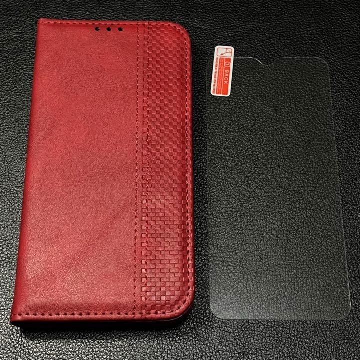 【2点セット】arrows We レザーケース「レッド」+ガラスフィルム 手帳型 F-51B FCG01 A101FC 手帳型ケース スマホケース 耐衝撃 アローズ