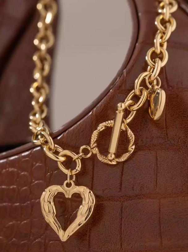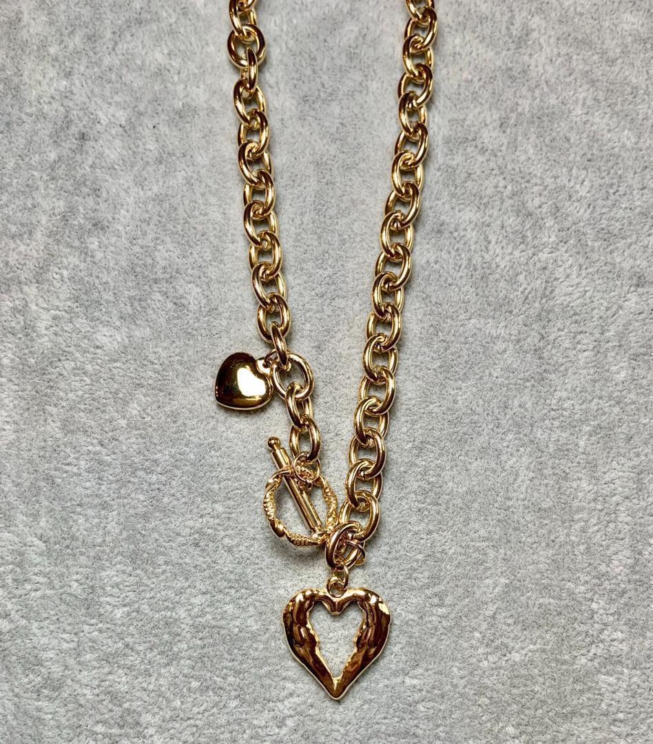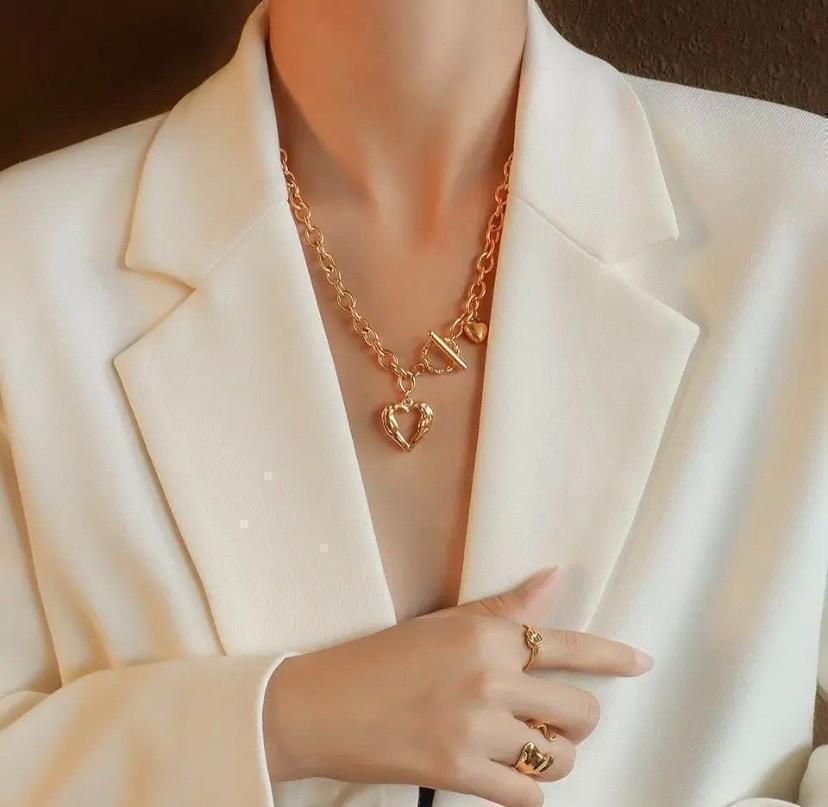 528★新品未使用★レディース ゴールド ハート ネックレス ロック ジュエリー アクセサリー ストーン ドレス ストリート パンク カジュアル