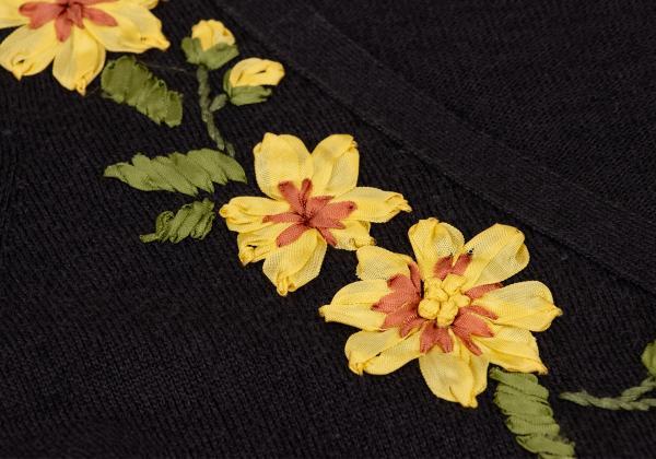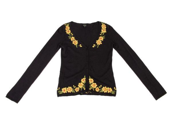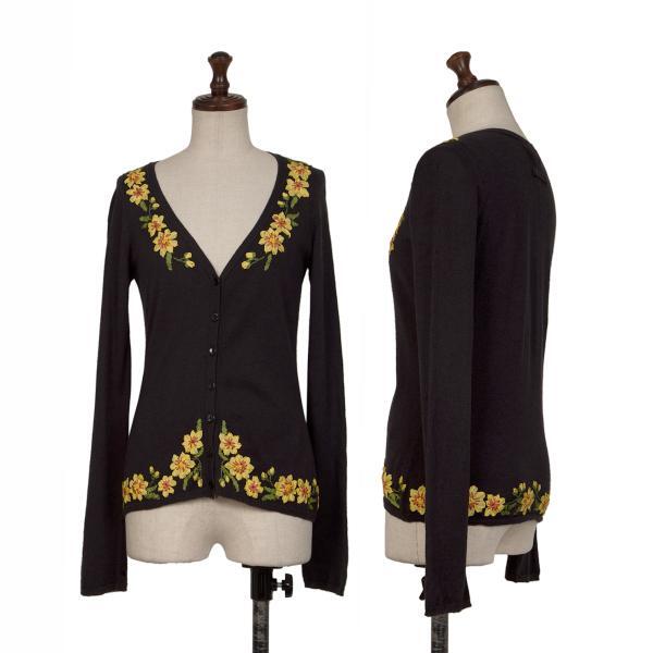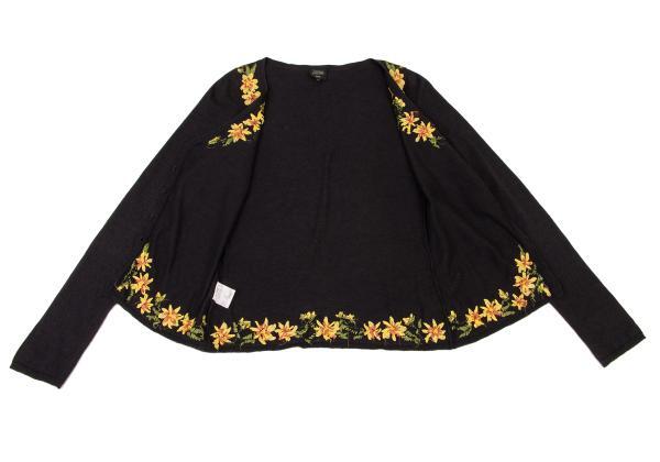 ジャンポールゴルチエ ファムJean Paul GAULTIER FEMME フラワーテープ刺繍カーディガン 黒黄緑40 |