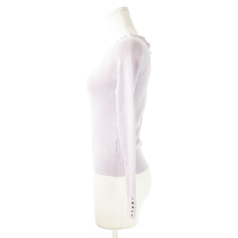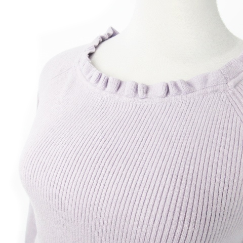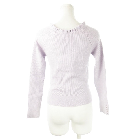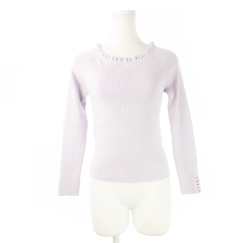 ミッシュマッシュ MISCH MASCH ニット セーター リブ フリルネック ラウンドネック 長袖 もっちり ワンポイント パール M 紫 ラベンダー