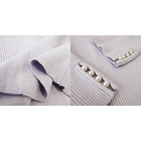 【仕様】素材 やや厚手 開閉 なし プルオーバー 伸縮性 あり 透け感 なし ポケット なし 裏地 なし 柄 無地 ワンポイント パール 袖口にはスリットがあり、つなぐようにパールビーズが配置された、フェミニンなニュアンスのアイテムです