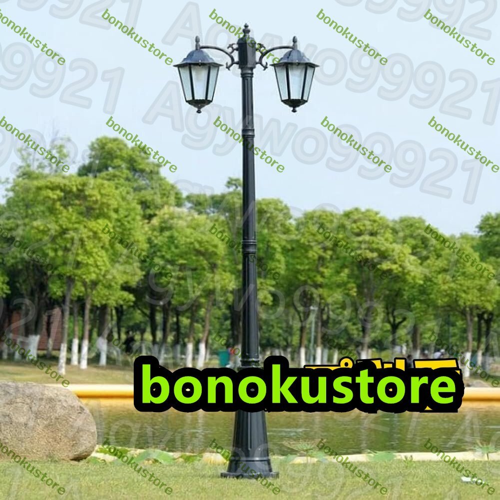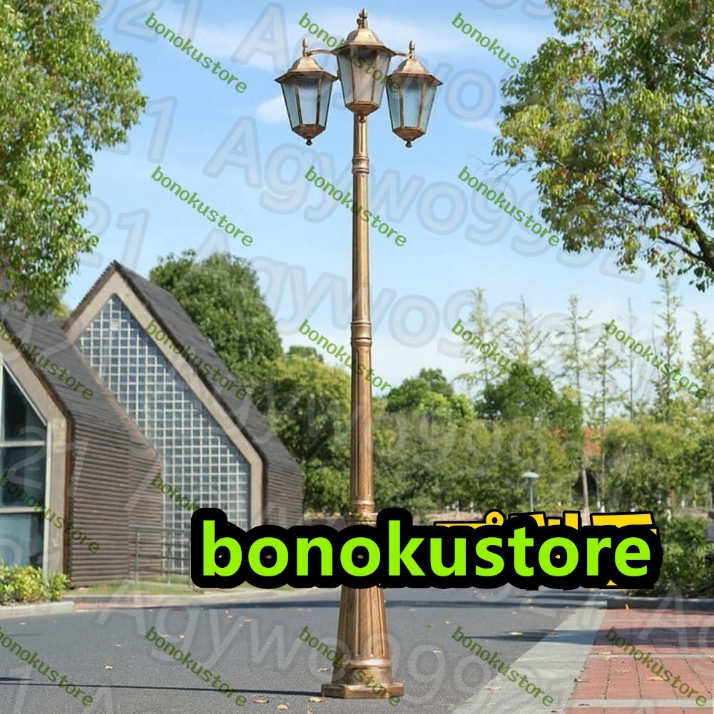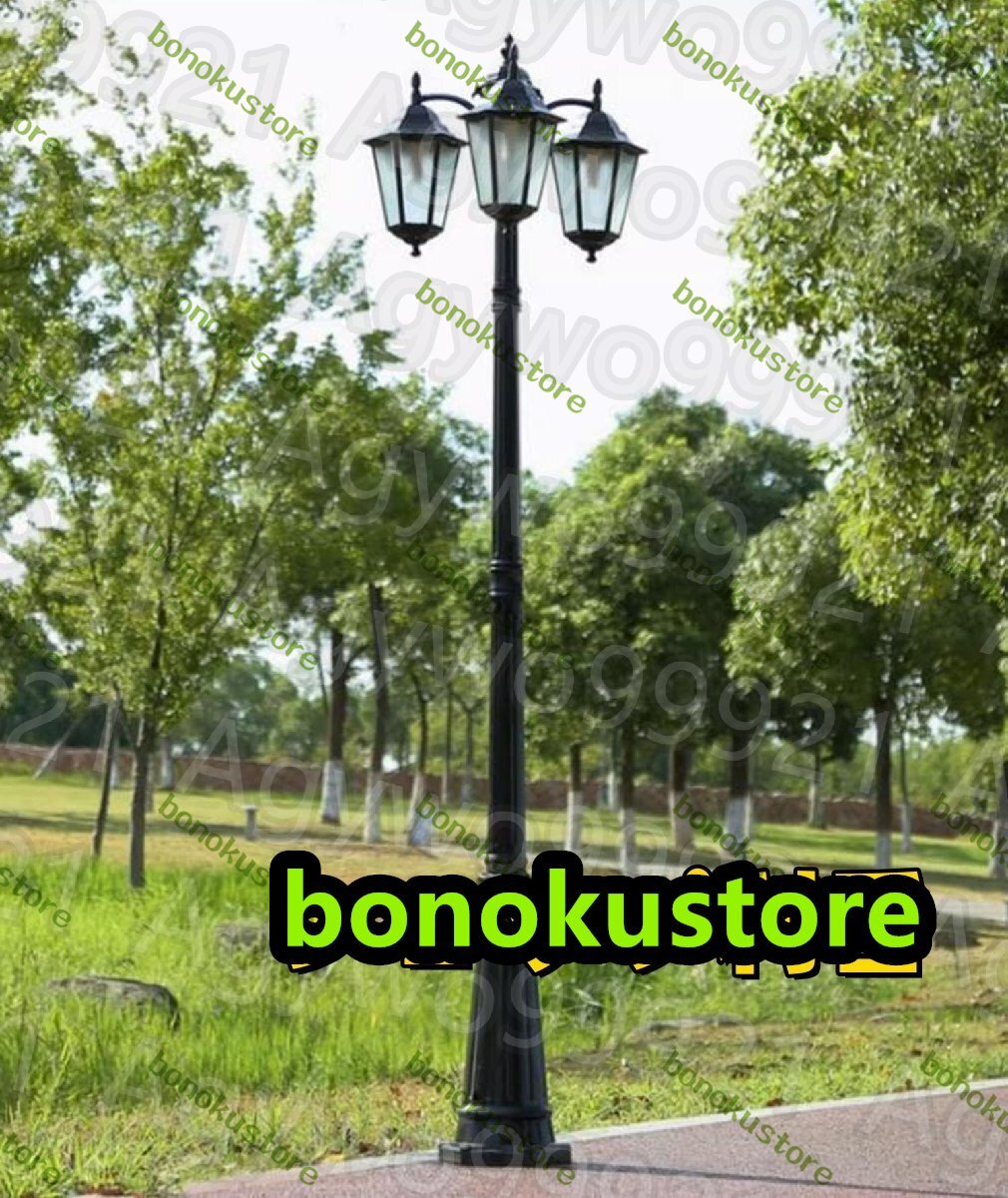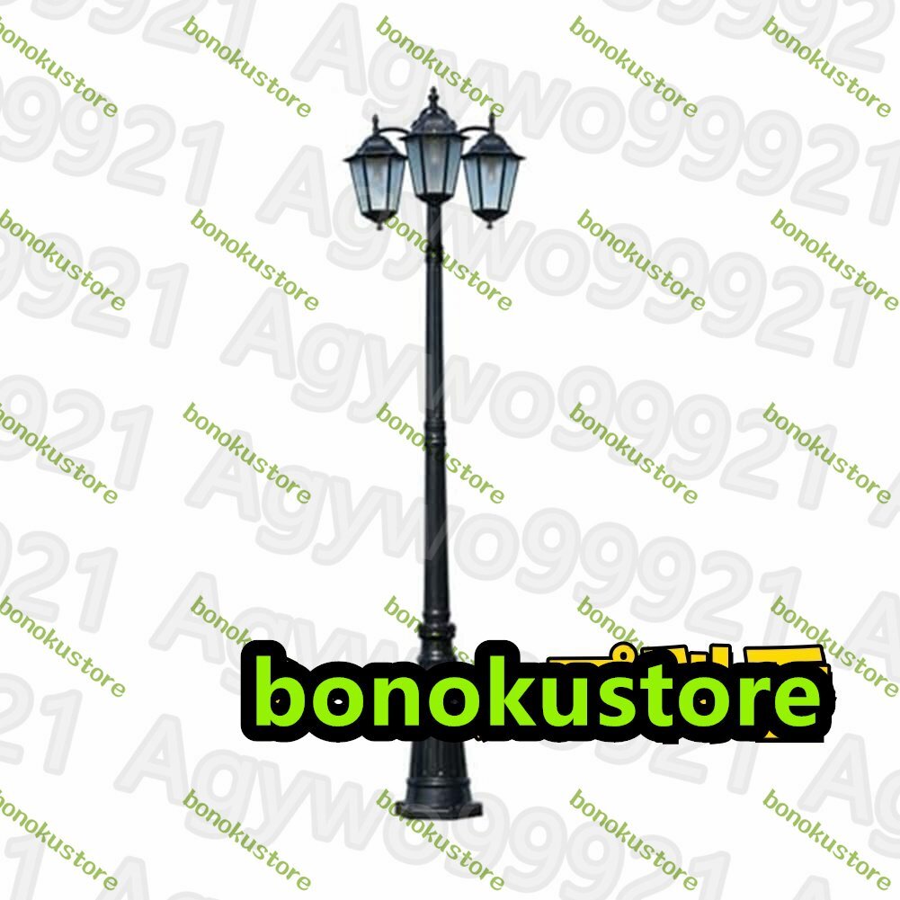 屋外レトロボラードライトハイポール風景列ランプアルミガラス街灯IP55防水 ライトヴィラE27装飾ポストランプ 庭園灯 3頭 黒 220MM