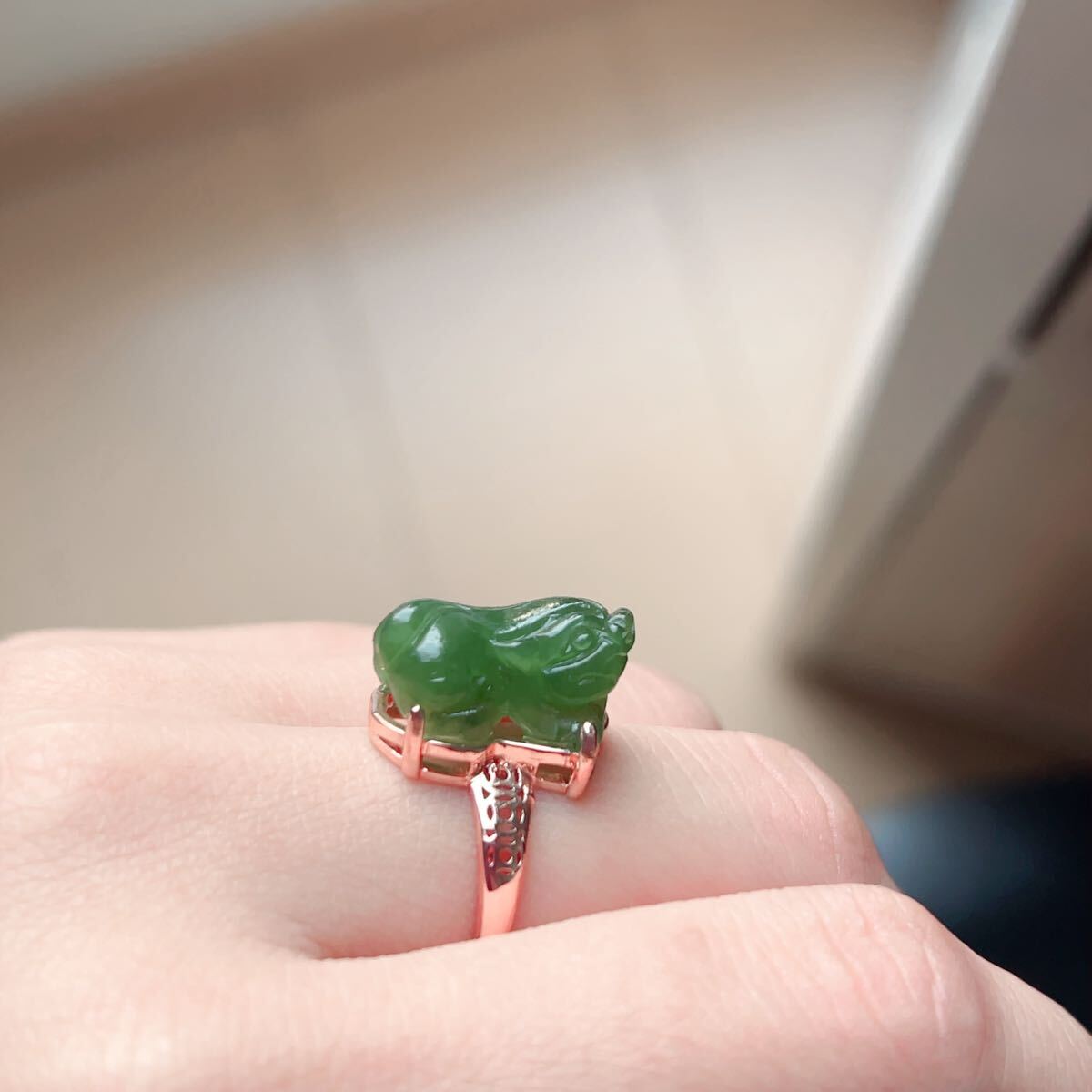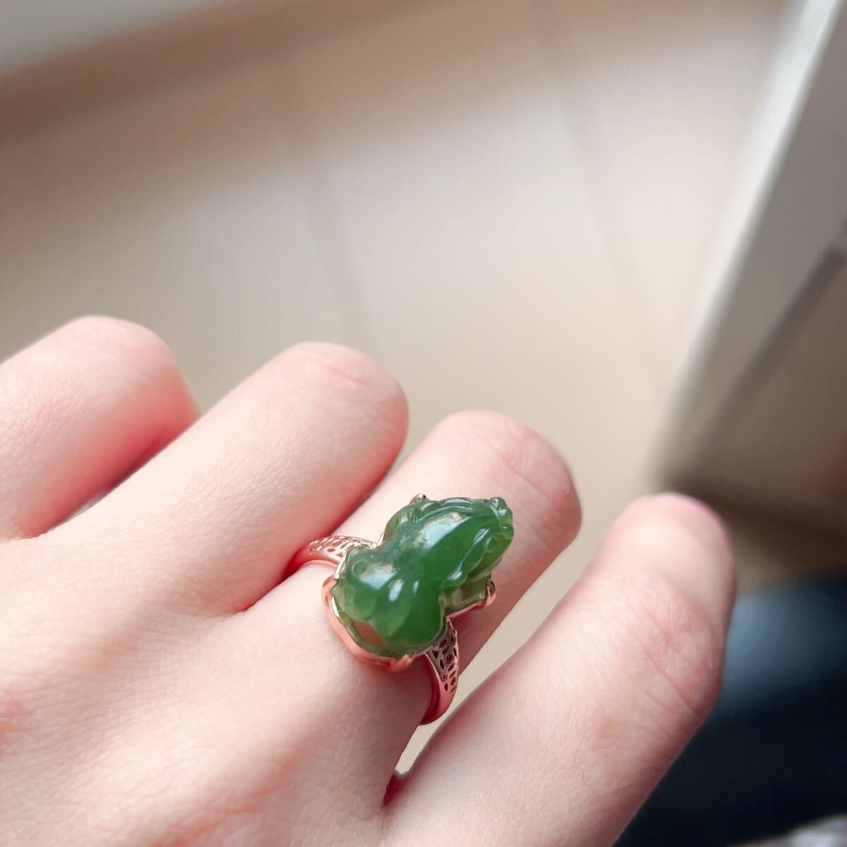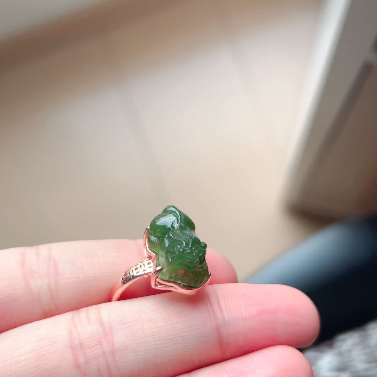 和田玉・碧玉◇翡翠・ヒスイ◇リング指輪◇貔貅ヒキュウ彫刻◇フリーサイズ◇天然石◇パワーストーン◇巾着袋付き◇プレゼントに010R11113
