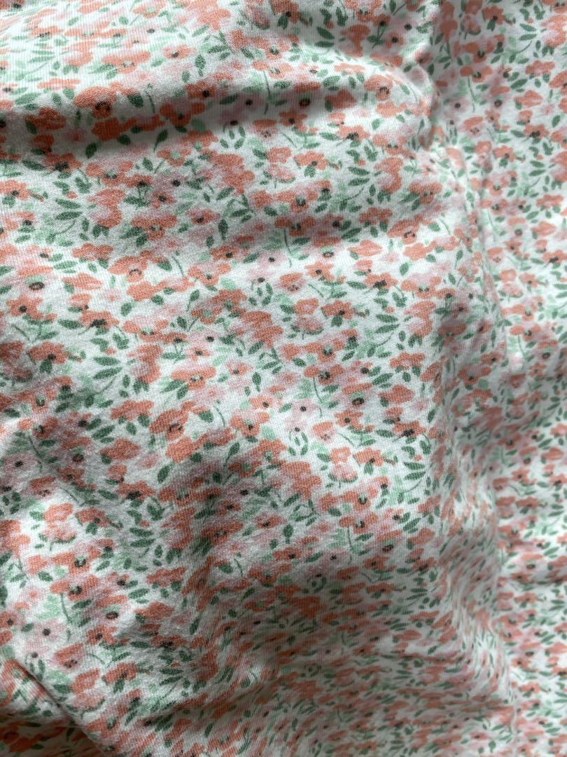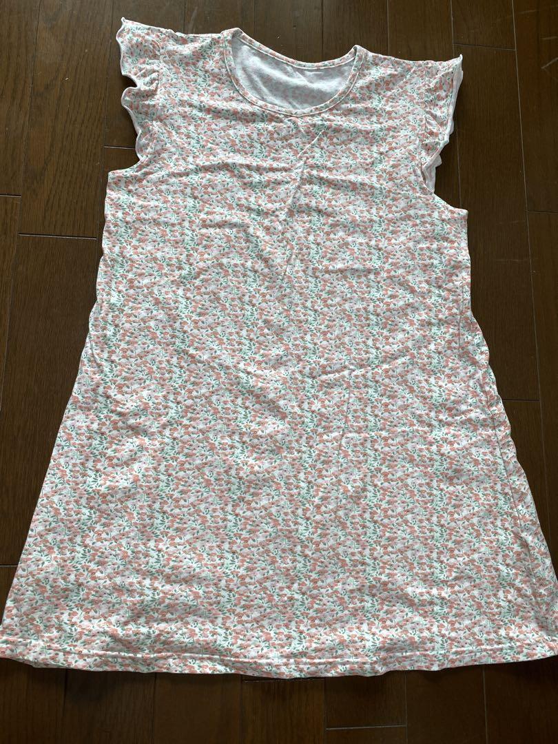 ピンクの花柄のワンピースは、優しい印象を与えます。