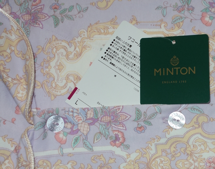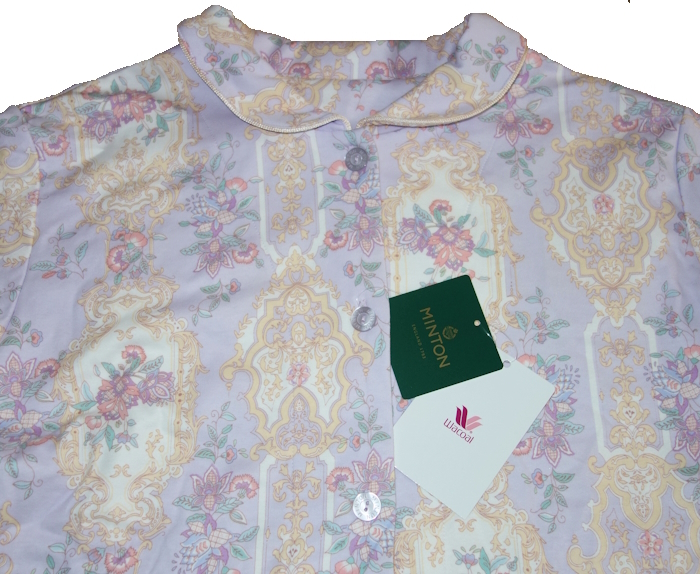 ミントン MINTON★ワコール★前開き 襟付き 長袖 ロングパンツ パジャマ★Lサイズ★ハドンホールxオーナメント★綿100% スムース素材★PU