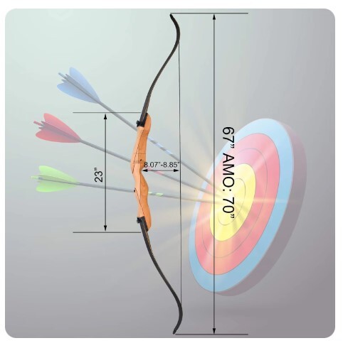 右利き用 アーチェリー用リカーブボウ 70インチ 22Lbs