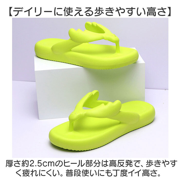 商品説明 | ・・【夏のカジュアルスタイルにマッチ】 ・動物のシルエットを連想させる遊び心あるデザイン♪サッと履けて夏のカジュアルスタイルに。 ・【軽い履き心地でストレスフリー☆】 ・ボリューミーな見た目に反して、とっても軽い履き心地。長時間履いてもストレスフリー。 ・【リゾートにも最適な滑り止め付き】 ・ソール部分は屈曲性があり凸凹加工済み。滑りにくくプールやビーチなどのリゾートでも安心! ・【クッション性に優れ歩きやすい◎】 ・ソフトでしなやかなインソールが優しく足をサポート。いろんな足にフィットし疲れにくい設計。 ・【デイリーに使える歩きやすい高さ】 ・厚さ約2.5cmのヒール部分は高反発で、歩きやすく疲れにくい。普段使いにも丁度イイ高さ。 ・【安定感のある歩行をサポート!】 ・底面はほぼフラットな形状で安定感もばっちり。軽やかな履き心地で、長時間履いても大丈夫。 |