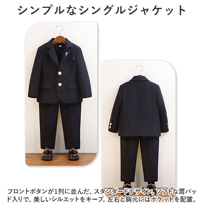 | 商品説明 | ・・コーデに悩むことなく、おしゃれにキマる!キッズ用(男の子)フォーマル6点セットが新登場。 ・【うれしい6点セット】 ・ジャケット、ベスト、長袖シャツ、ロングパンツ、蝶ネクタイ、コサージュの6点セット。大人顔負けのかっこいいスタイリングが完成☆ ・【シンプルなシングルジャケット】 ・フロントボタンが1列に並んだ、スタンダードデザイン。ソフトな肩パッド入りで、美しいシルエットをキープ。左右と胸元にはポケットを配置。 ・【こなれ感がアップするベスト】 ・よりスタイリッシュな雰囲気を演出し、アクセントになるアイテム。ジャケットを脱いでもおしゃれ☆バックベルトでサイズの微調節可能。(※ポケットはフェイクです。) ・【サラッと柔らかな長袖Tシャツ】 ・お肌に優しいチクチク感のない仕上がり。絶妙なニュアンスカラー。 ・【スマートなロングパンツ】 ・足元をすらっとキレイに魅せるフォルム。バックゴム仕様で着替えもラクチン。左右にポケット付き。(※ボタンはフェイクです。) ・【小物使いも完璧!】 ・襟元にポイントをプラスする蝶ネクタイ。スライドさせてカチッと留めるだけ、長さ調節もラクラク。胸元を彩るコサージュも付属。 ・【特別な日にとっておきの1着を】 ・お子さまが着用しやすい、薄手の柔らかな生地感。誕生日や七五三、結婚式などのイベント、入学・卒業式に! |