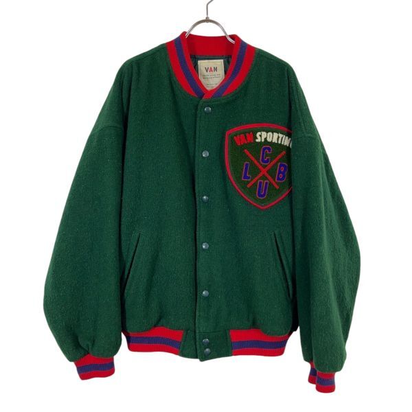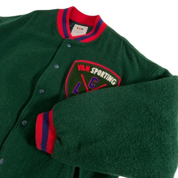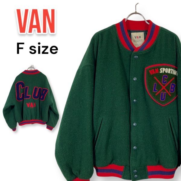【激レア】80s 90s VAN JACKET ヴァンヂャケット ワッペン 中綿キルティング スタジャン ブルゾン サイズF 緑 グリーン
