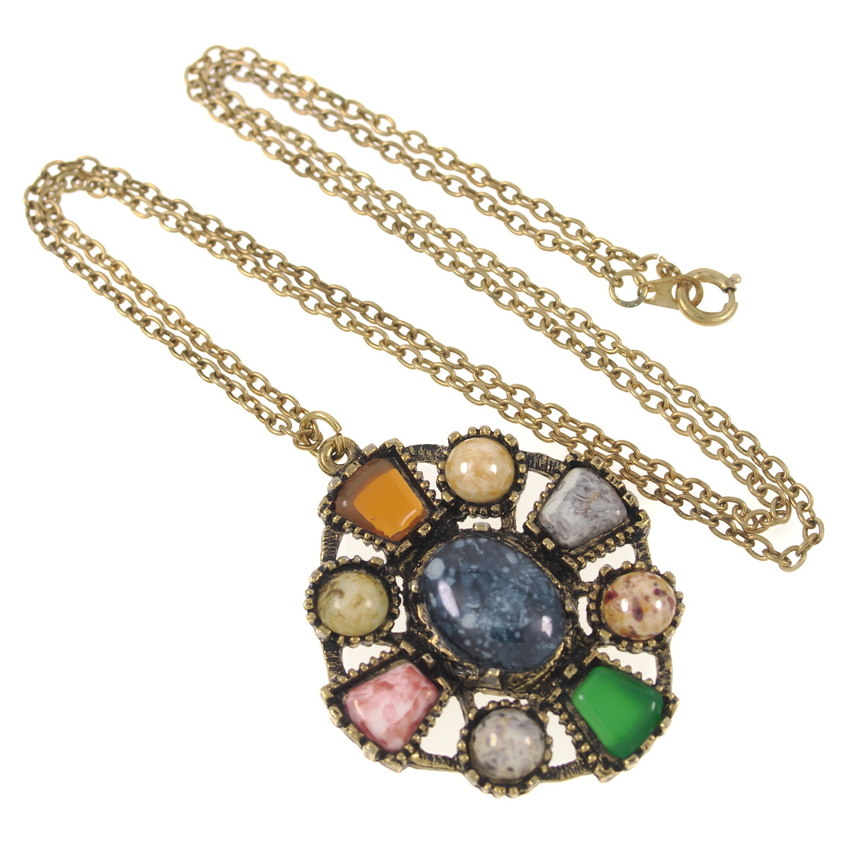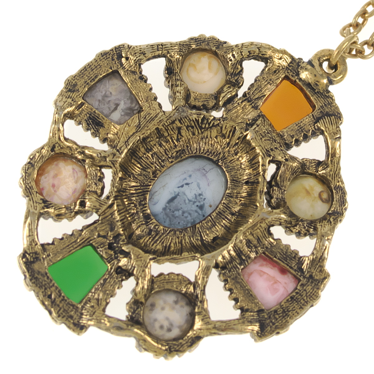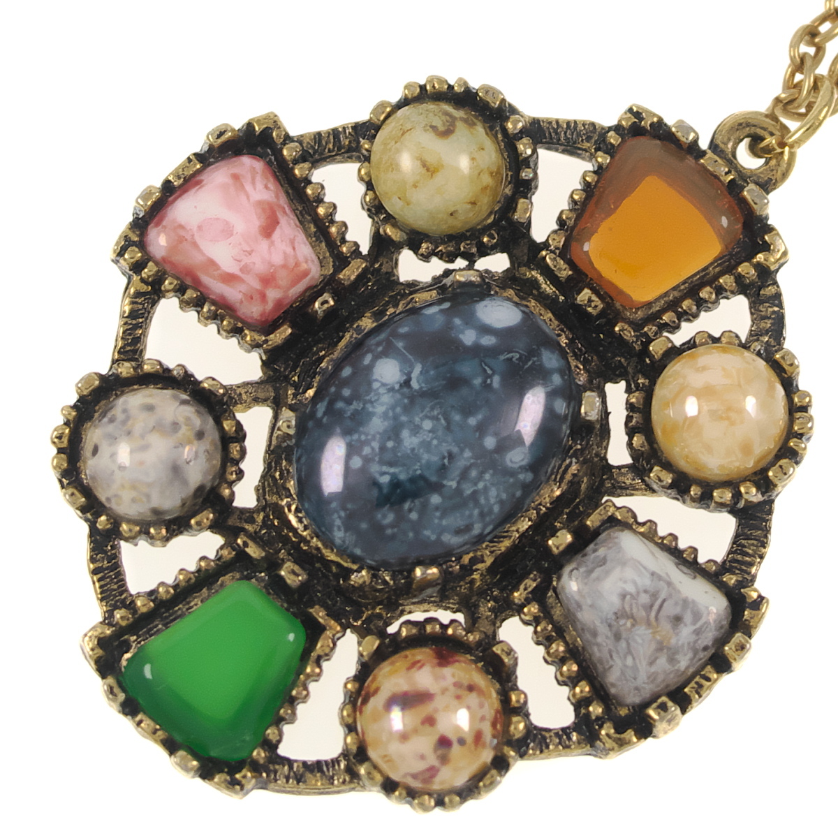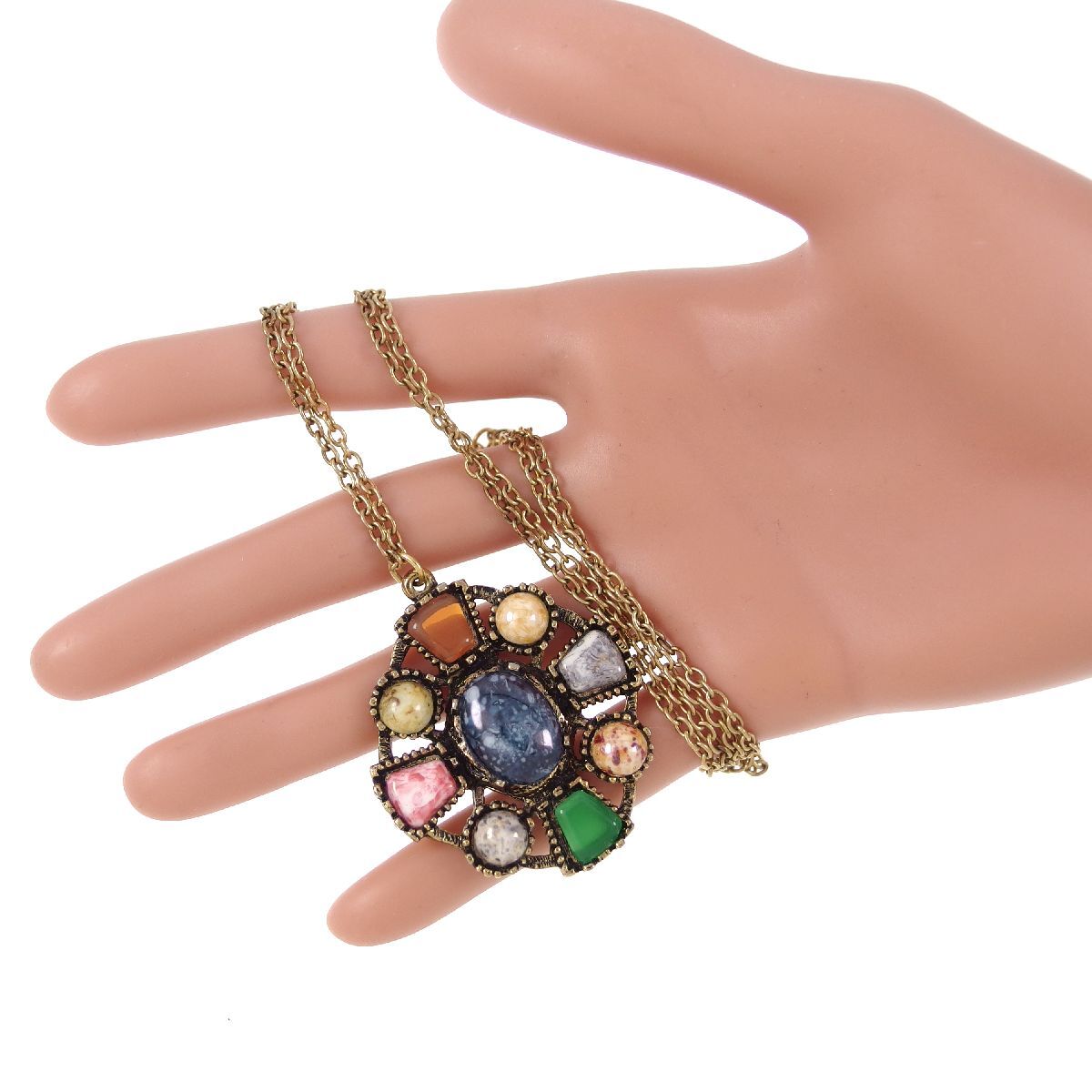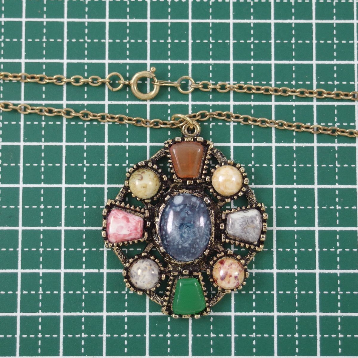 UK2561◆ クロスモチーフ ペンダント ケルト十字 9種のカラーストーン 色石 英国 イギリス ヴィンテージネックレス ◆