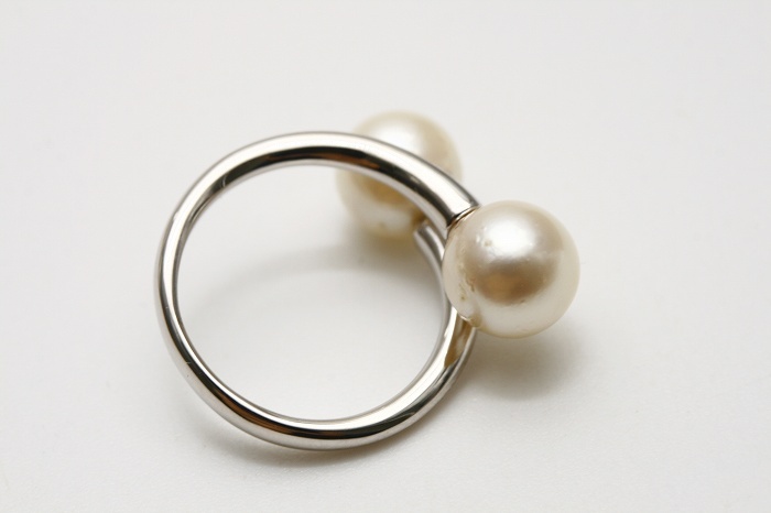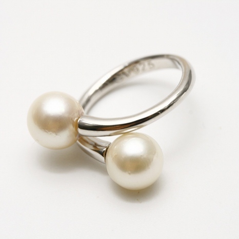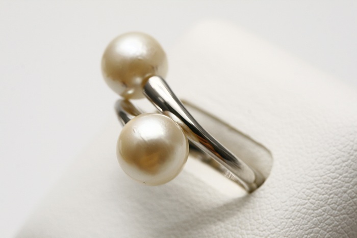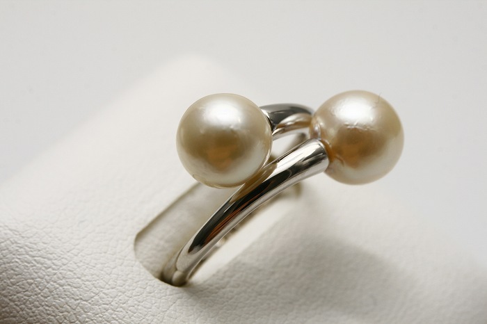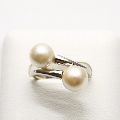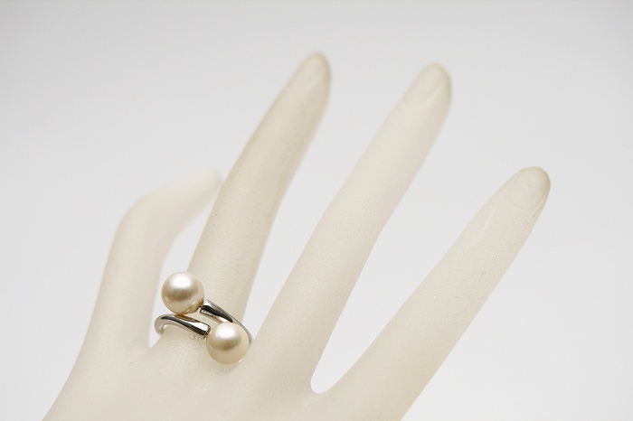 アコヤダブルリングです。 2粒リングは1粒リングとはまた違った雰囲気をお楽しみ頂けますよ(^^) 上品なホワイトカラーの色合いに仕上がっています。 リングサイズは調整可能のフリータイプとなっておりますので色々な指にはめてお楽しみ下さい♪♪ | |