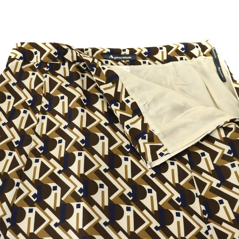 アクアスキュータム AQUASCUTUM フレアスカート ひざ丈 総柄 ジップアップ 茶 ブラウン /KL レディース