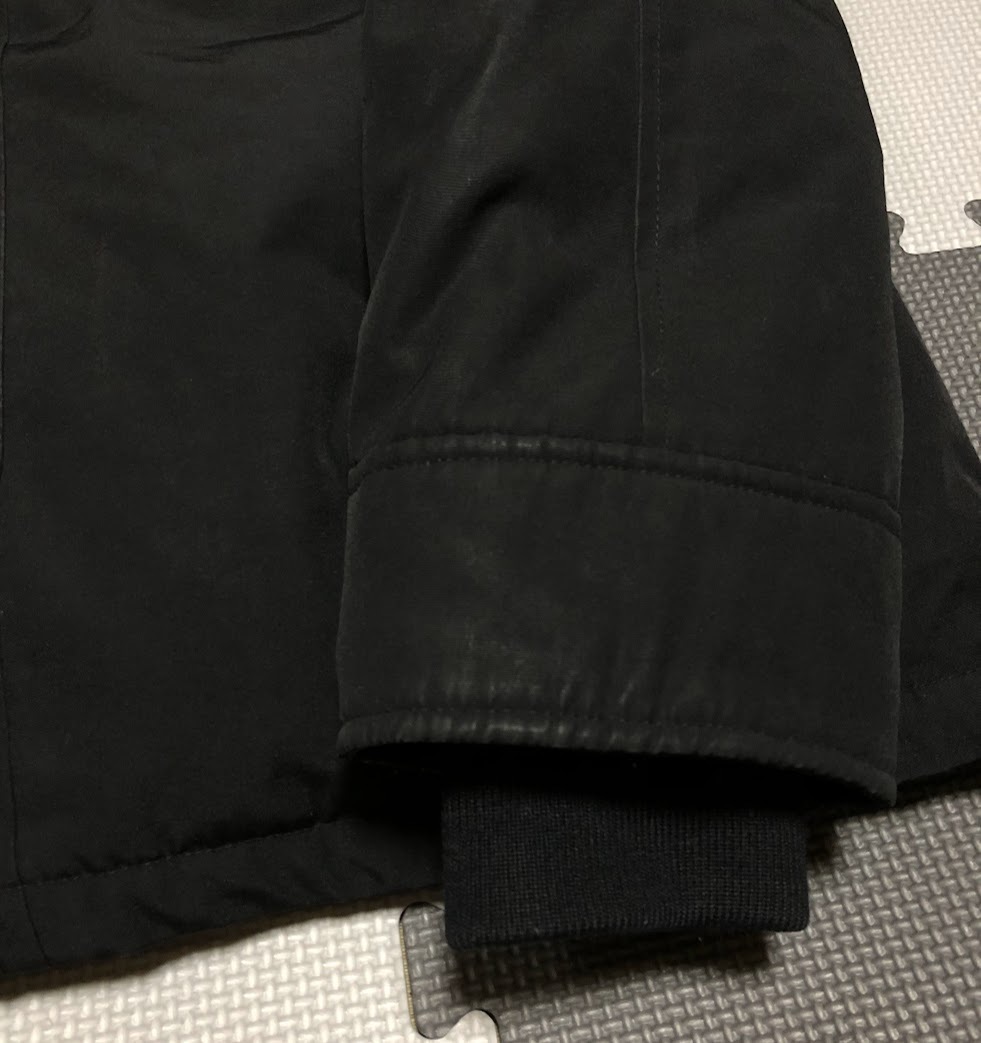 袖や裾の部分の生地の痛み(テカリ)が目立ちます。