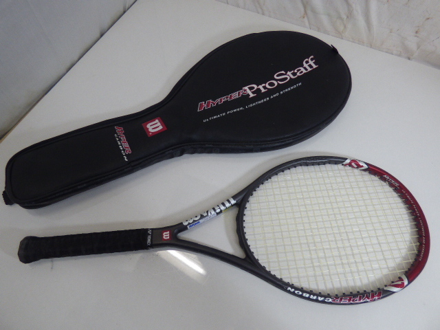 へ871.テニスラケット ハイパー 5.0 hyper carbon ウィルソン ブラック レッド ケース付き 硬式