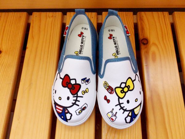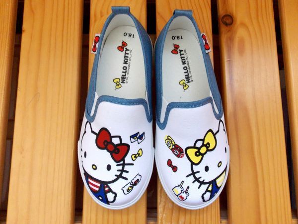 【超値引き!!】台湾★即決♪ 正規品!! サンリオ ハローキティ&ミミィのキャンバス スリッポン 18.0cm♪