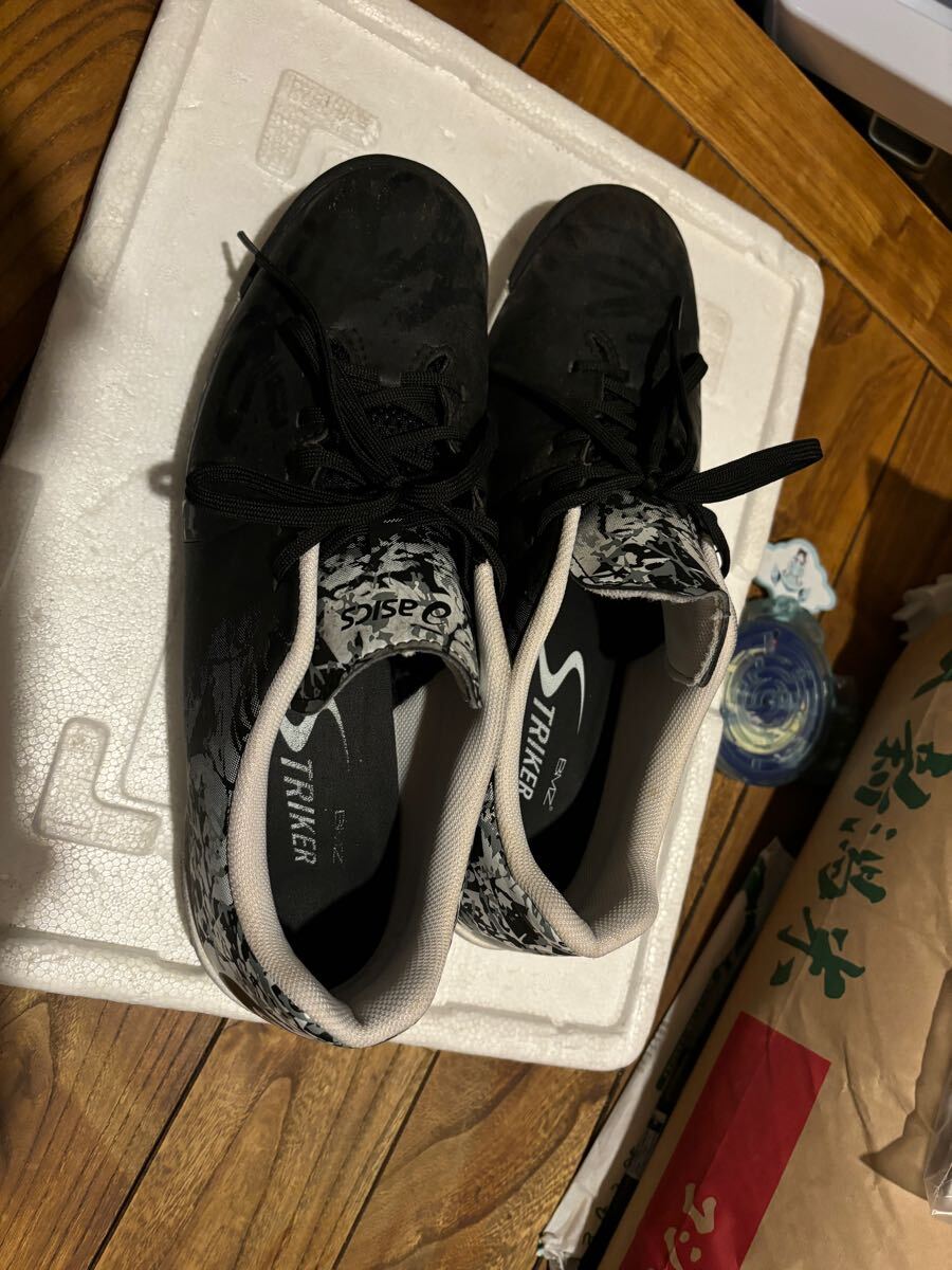「アシックスの人気シリーズTOQUE(トック)のサッカー・フットサル用シューズです。ブラックのシンプルなデザインで、どんなウェアにも合わせやすい一足です。使用感はほとんどなく、美品の状態です。サイズは27cmですので、日本の標準的な足サイズにぴったりです。ソールの摩耗も少なく、これから長くご愛用いただけます。