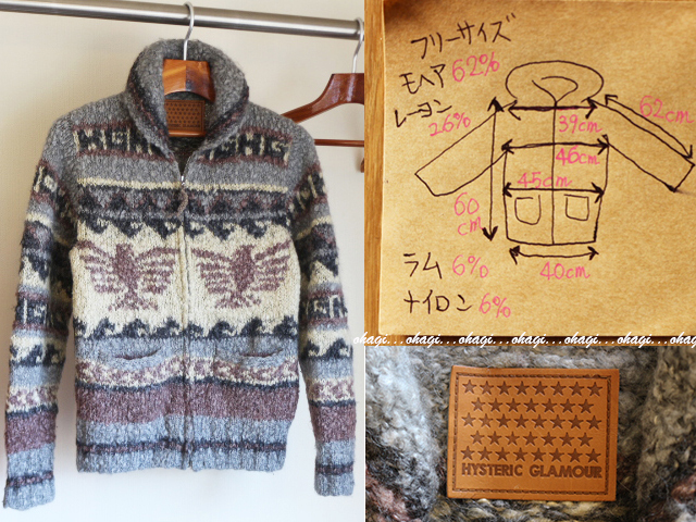 ヒステリックグラマーのカウチン☆ジップアップカーディガンです。
