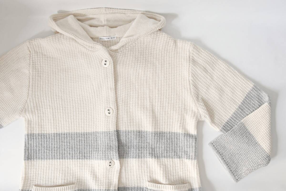 ATELIER SIXの配色ボーダー ウールニットフーディ―ジャケットになります。