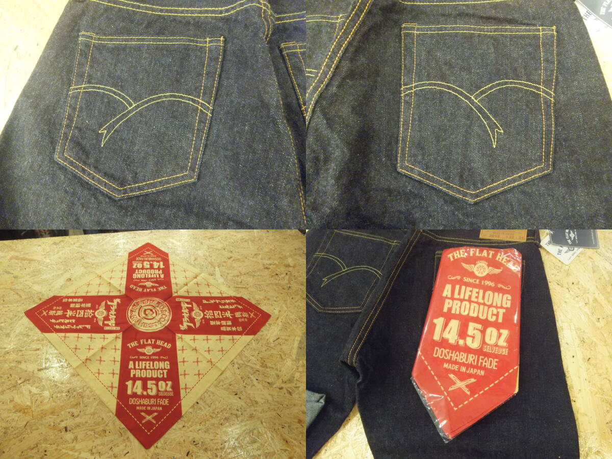 ・その他 : ◎製品洗い済み=ワンウォッシュ済みなので、縮み等を気にせず、このまま穿けます。 ◎右後ろポケットには、『紙ラベル付いているのではなく、フラットヘッド製のバンダナが入っている!』という、お得な仕様です!⇒つまり、バンダナ付きです!