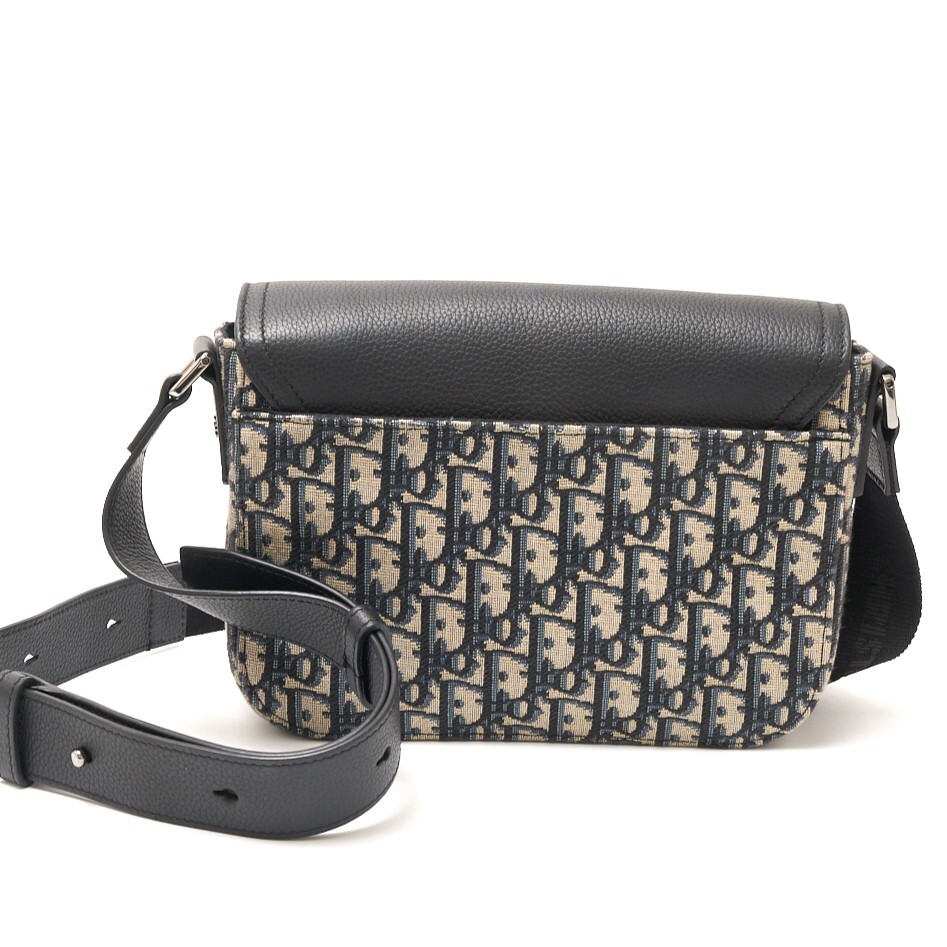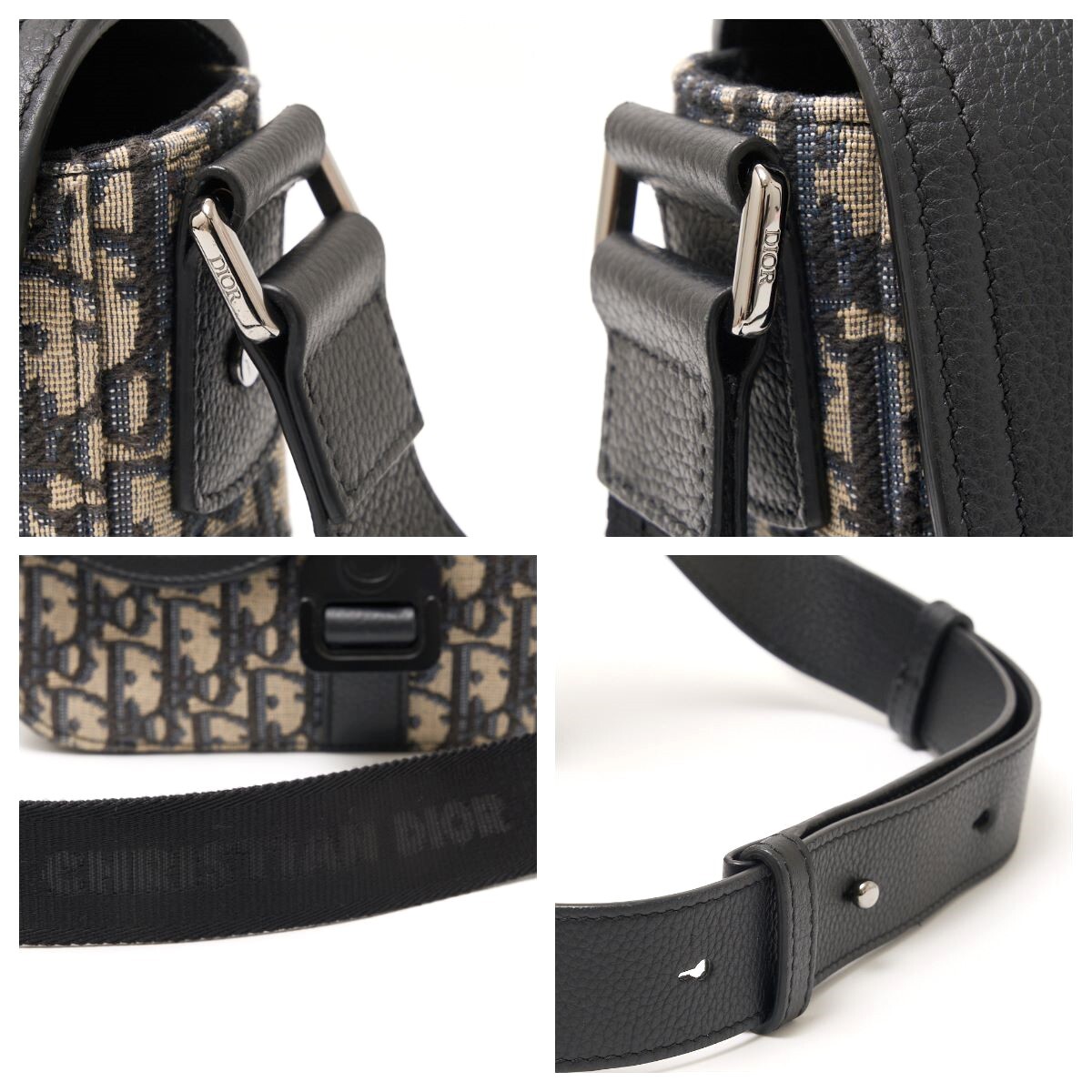 CHRISTIAN DIOR クリスチャンディオール トロッター サドル オブリーク メッセンジャーバッグ クロスボディ ジャガード×レザー ブルー