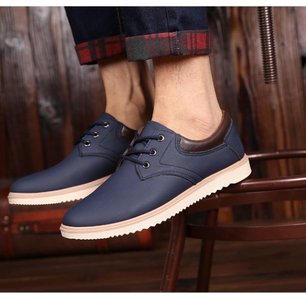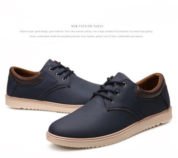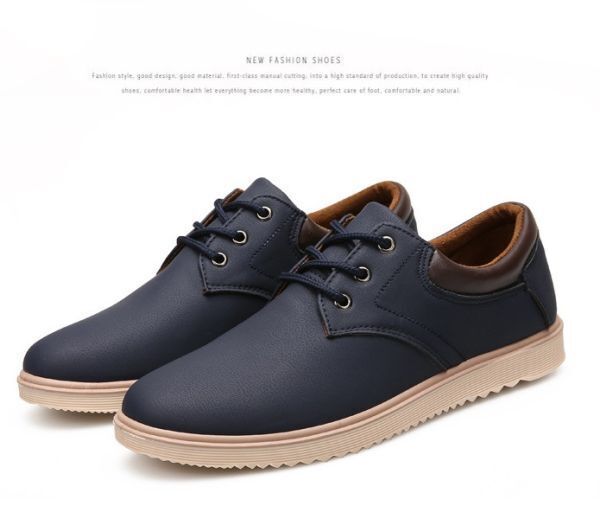 靴 【25.5cm】【 s60 紺 】 メンズ ローカット レザー調 PUレザー スニーカー シューズ カジュアル シンプル ビジネス 通勤 通学 ネイビー