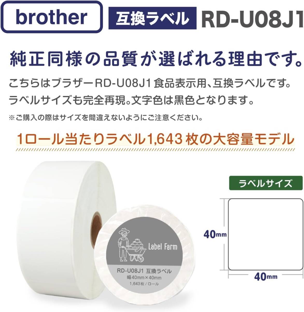 ラベルファームRD-U08J1 ブラザー 互換食品表示ラベル (3ロール) 幅40mm x 40mm TD-2130N / TD-2130NSA (3 ロール)